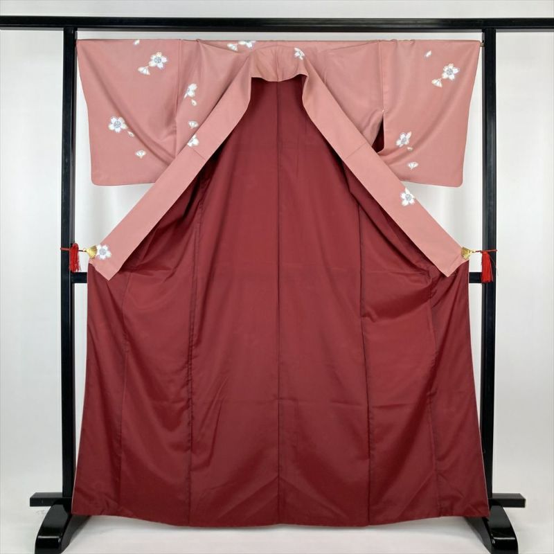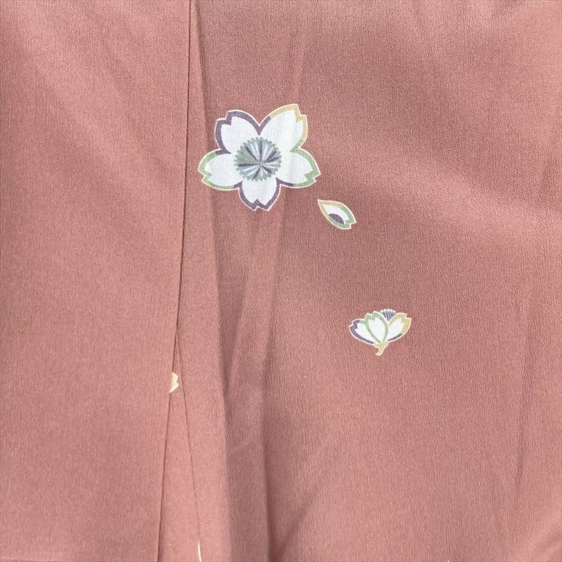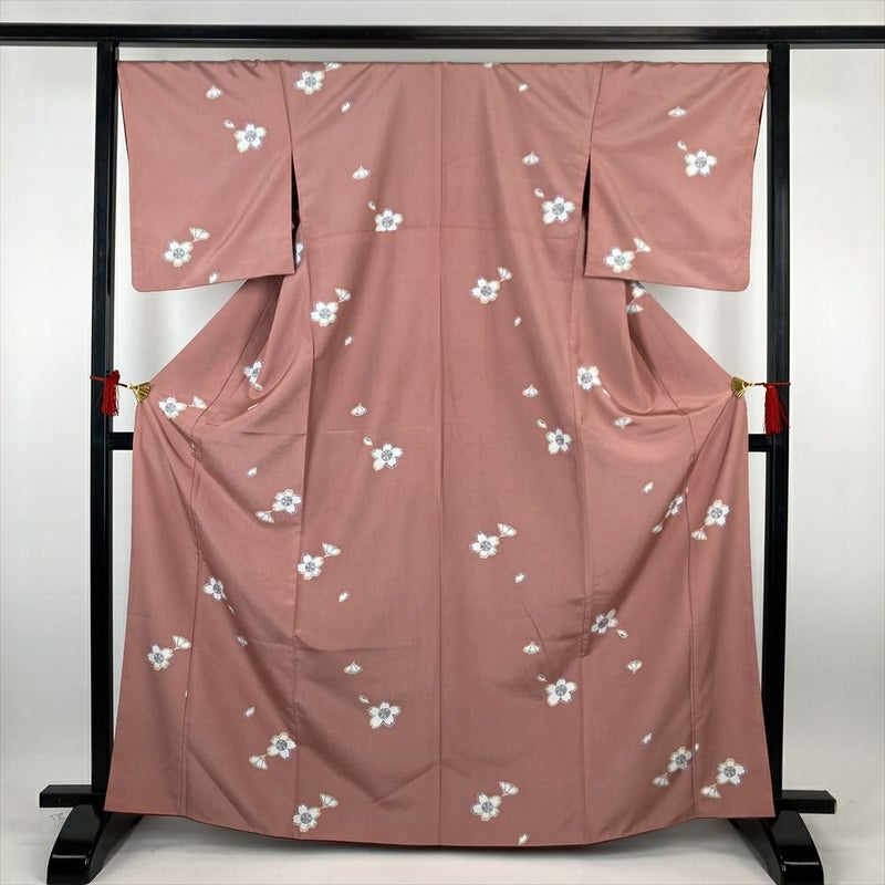 (中古)小紋 ピンク ポリエステル 桜 袷 M【身丈】164.5cm 【裄丈】67.5cm
