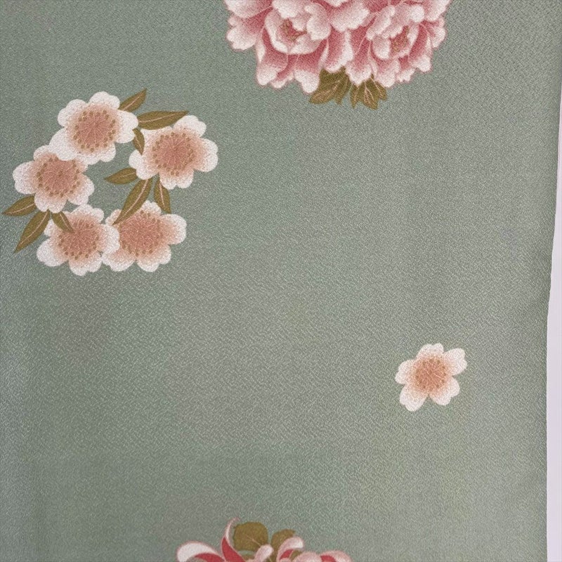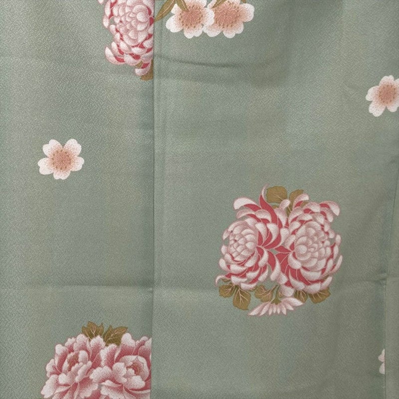 【色柄】緑 カジュアル 牡丹 菊 桜