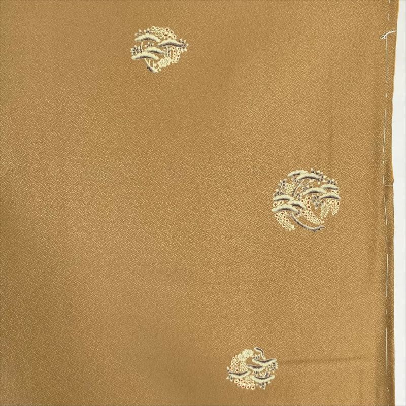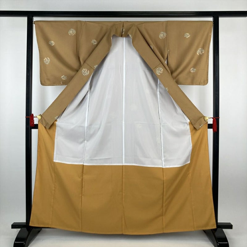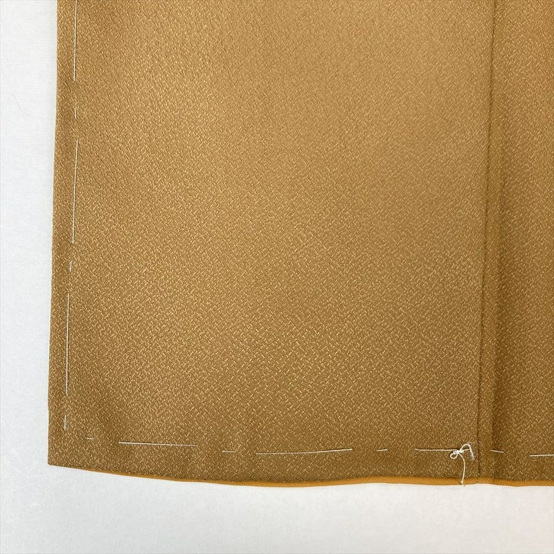 (中古)小紋 黄色 ポリエステル 松 藤 菊 袷 M【身丈】160.5cm 【裄丈】66.5cm