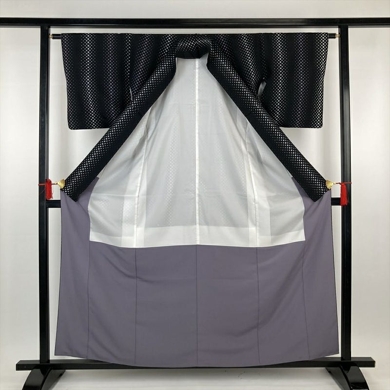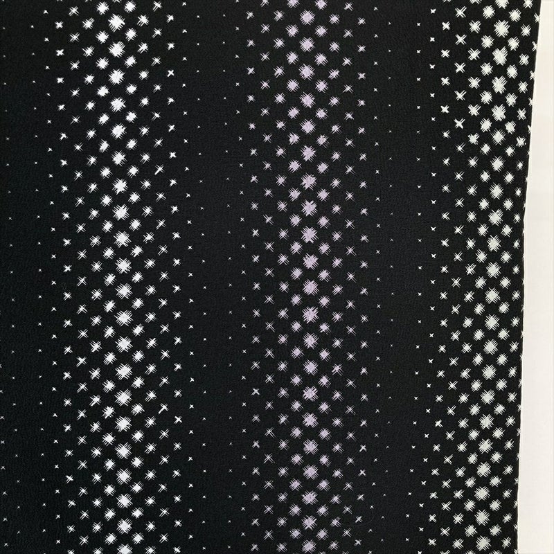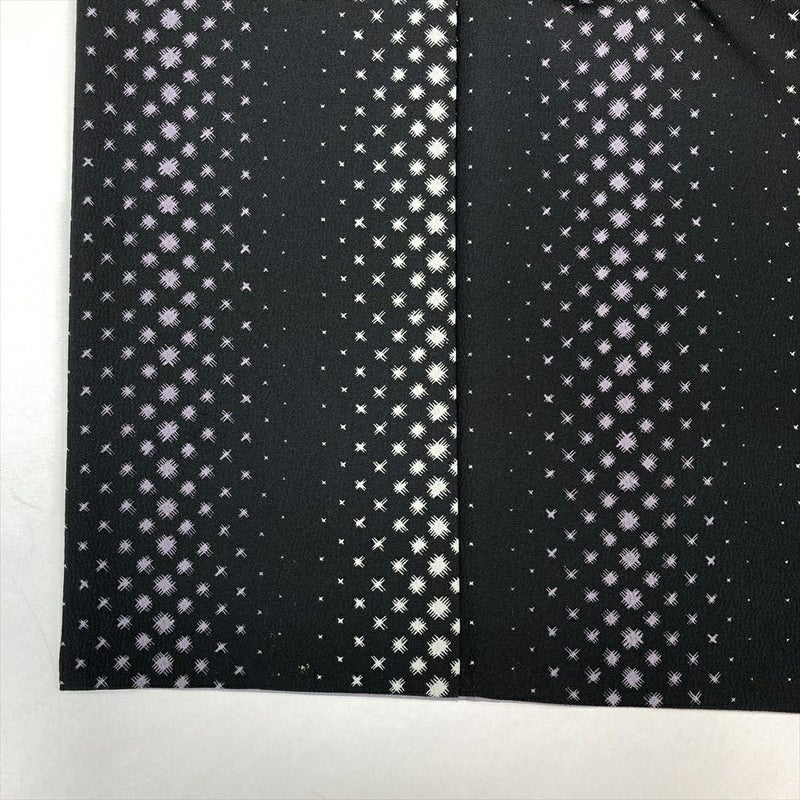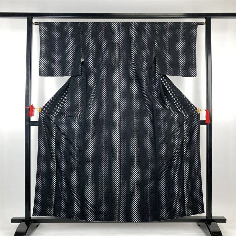 (中古)小紋 黒 カジュアル ちりめん調 幾何学 縦柄 袷 S【身丈】156cm 【裄丈】62.5cm