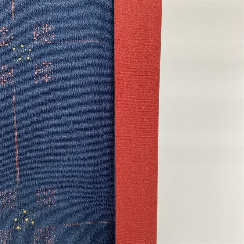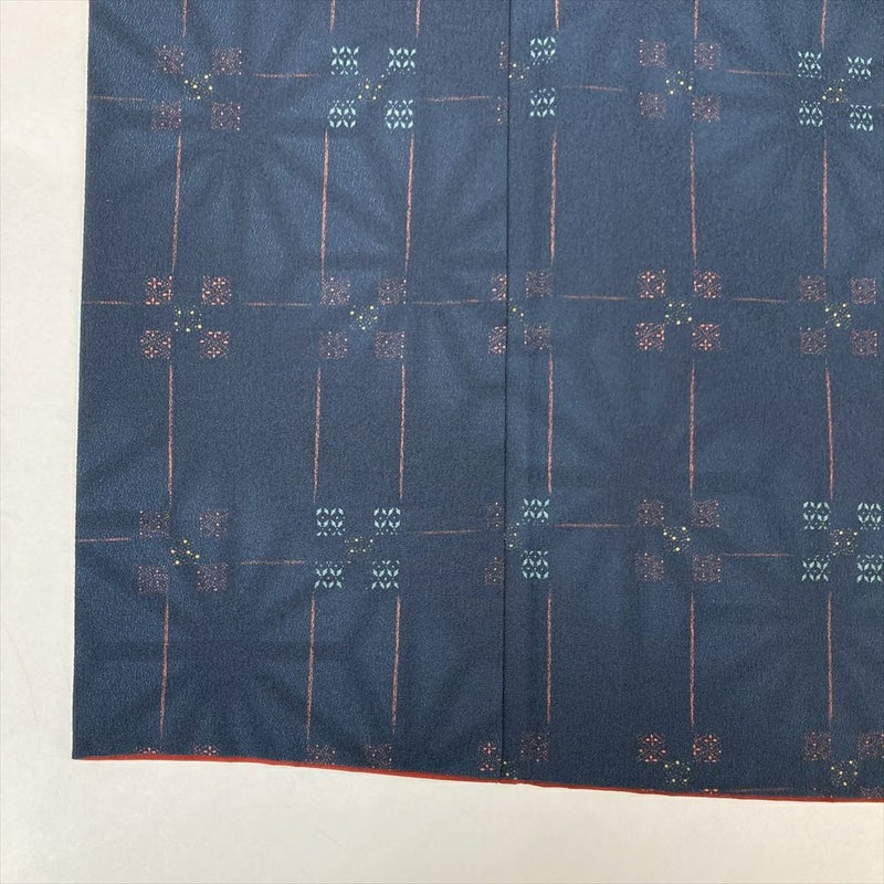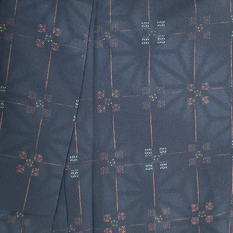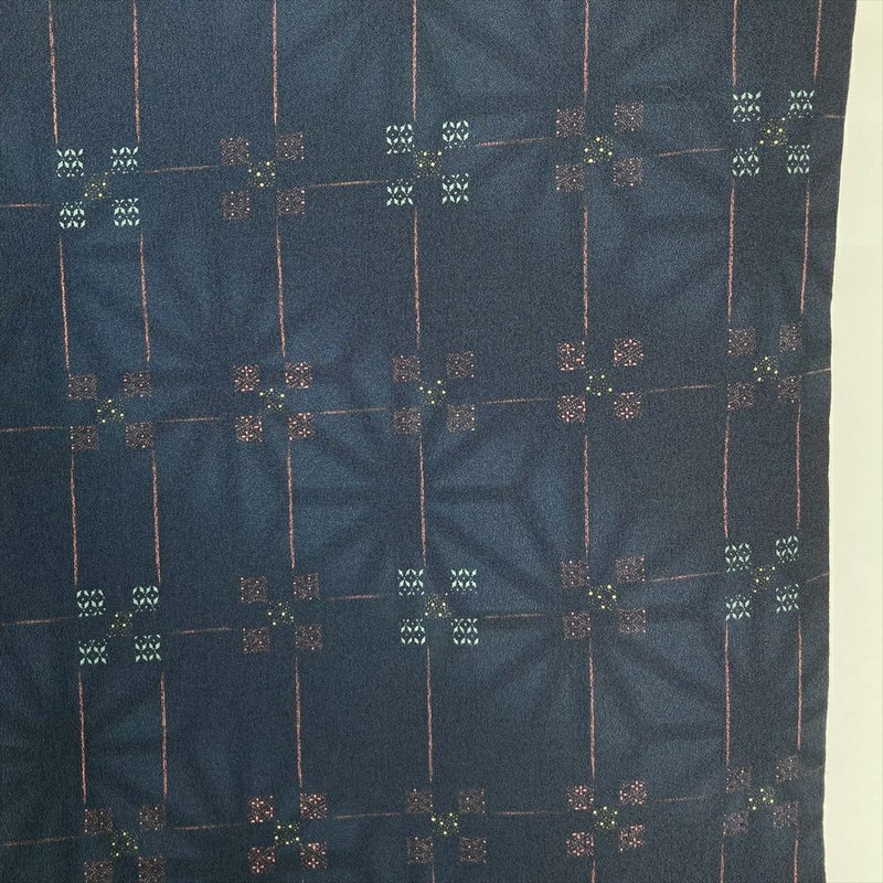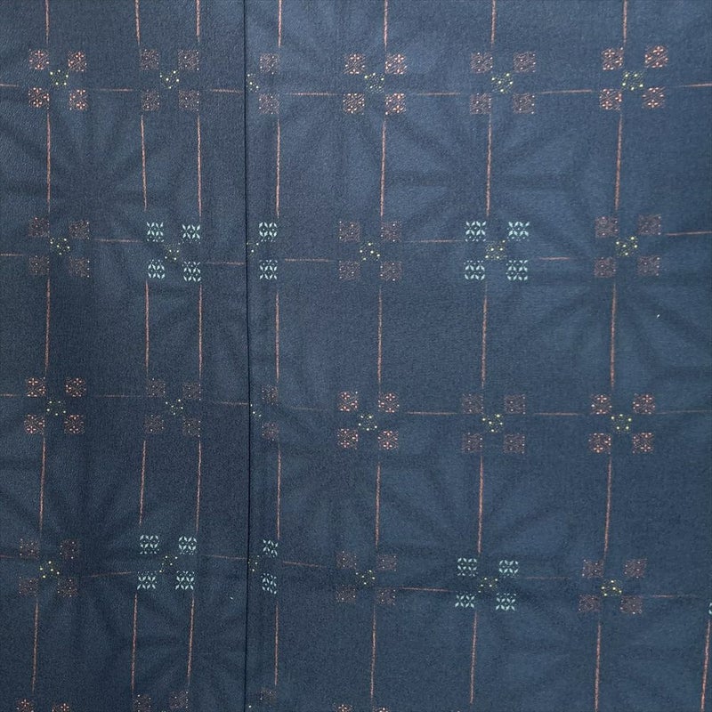 【色柄】紺 ちりめん調 変わり格子 七宝 麻の葉