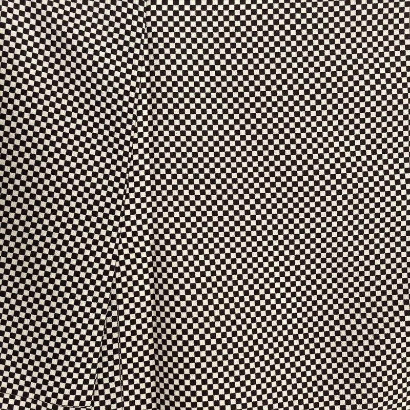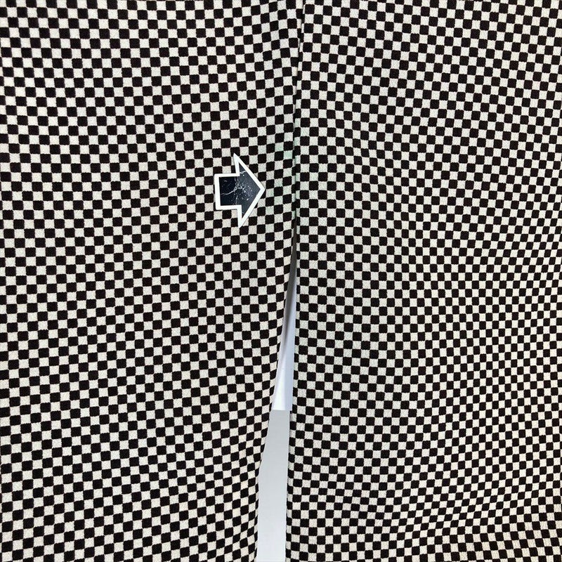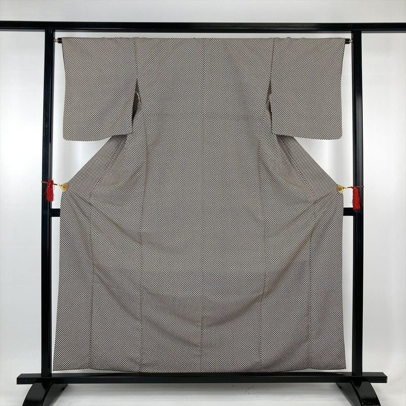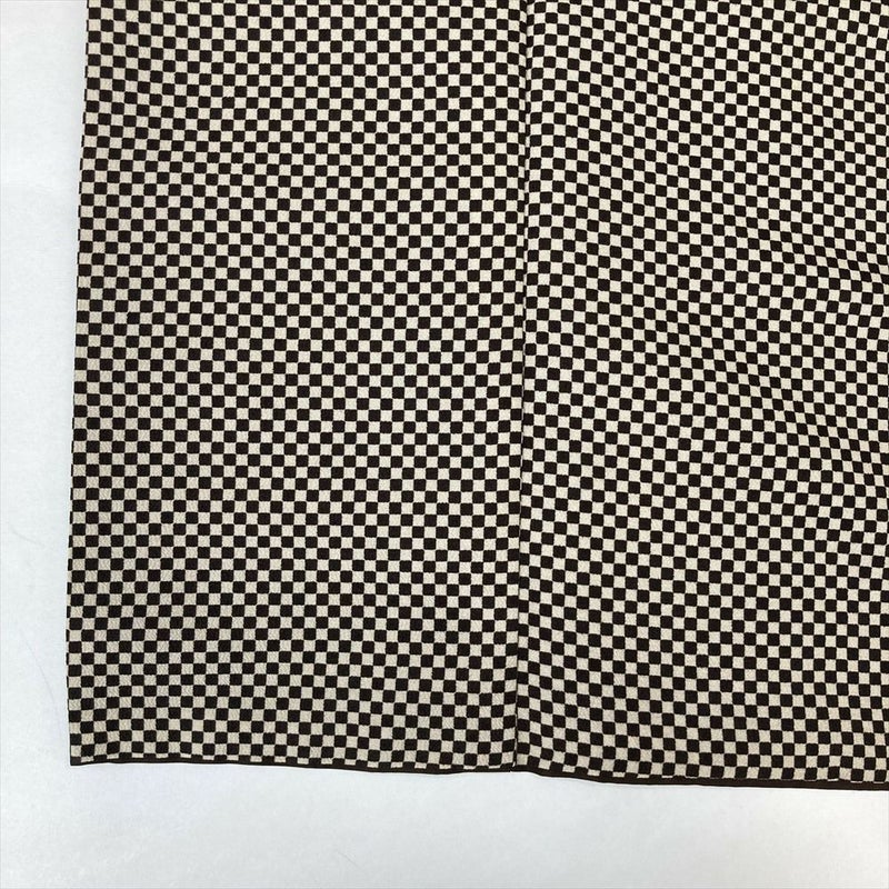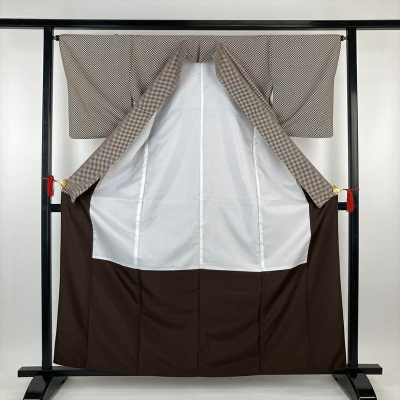 (中古)小紋 茶 ポリエステル 洗える ちりめん調 市松 袷 S【身丈】158cm 【裄丈】64.5cm