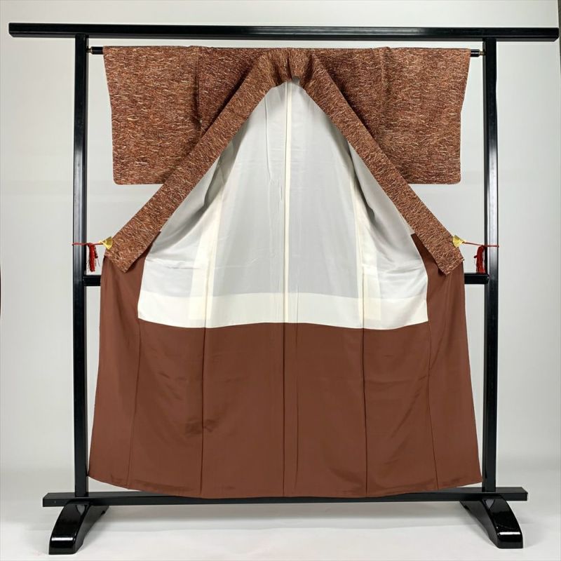 【色柄】茶 カジュアル ろうけつ染め 未洗い 衿引き糸