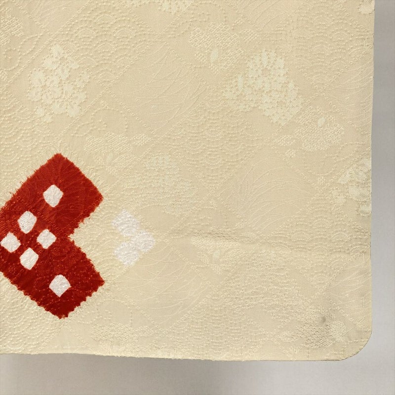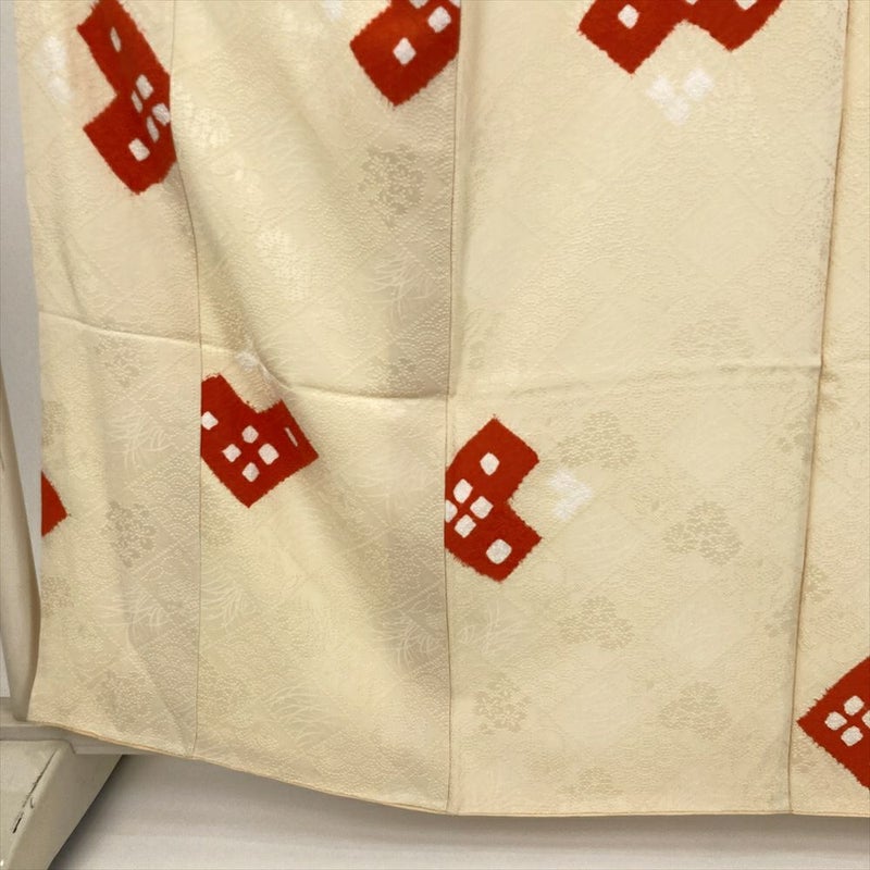(中古) 小紋 薄黄 カジュアル 地紋織り 絞り 袷 絹 【身丈】153.5cm【裄丈】65.5cm