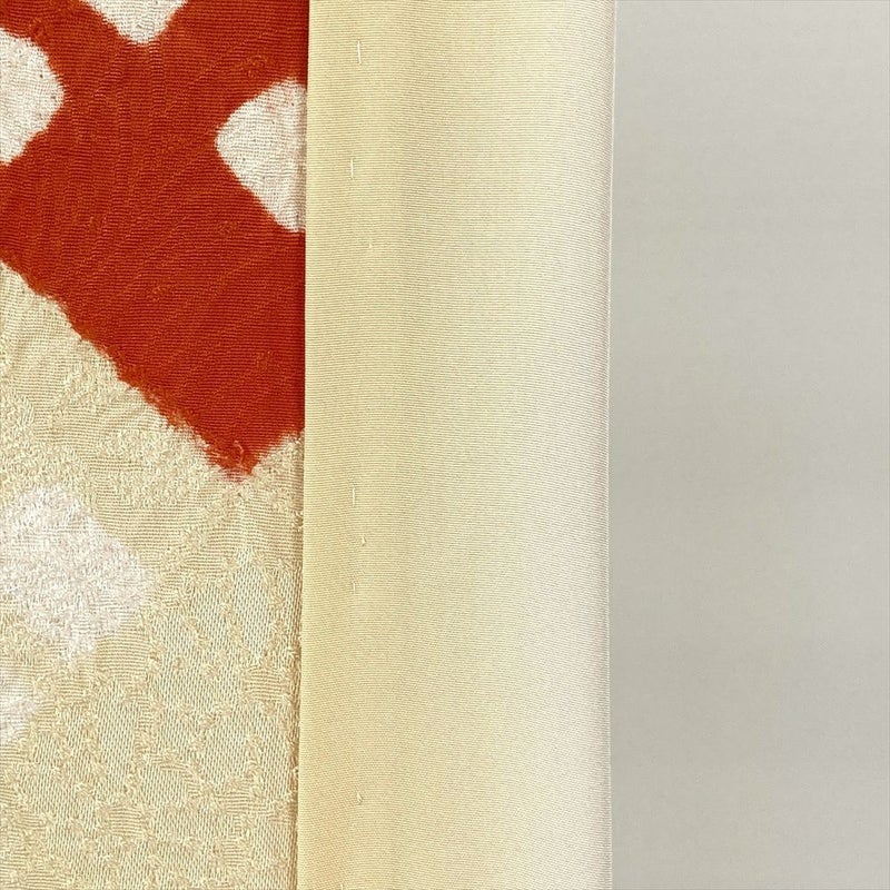 淡い黄色に明るい橙が溶け込む、陽だまりのように温かな染め小紋。