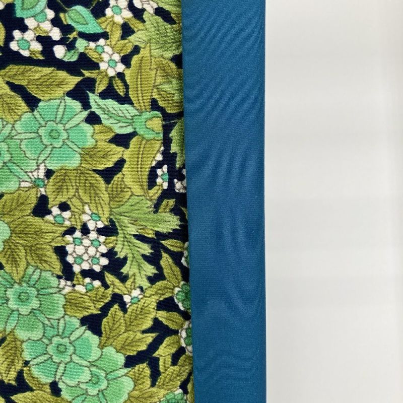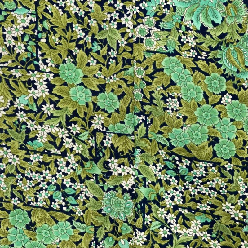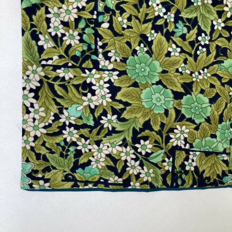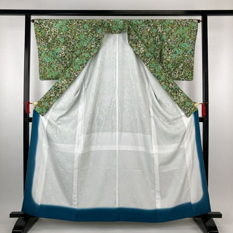 (中古)小紋 緑 小花柄 裏地ポリエステル 袷 S【身丈】156cm 【裄丈】64cm