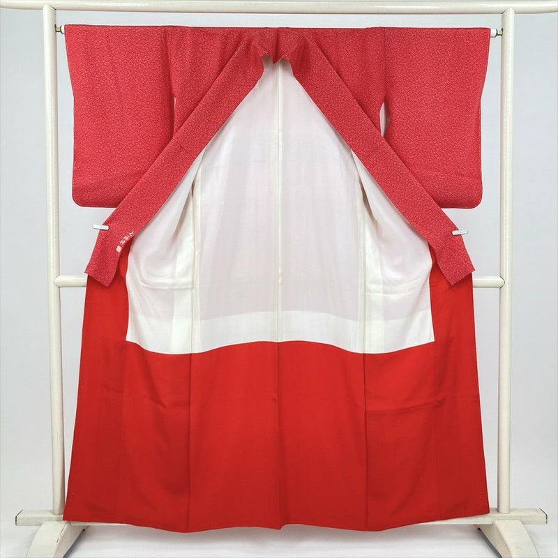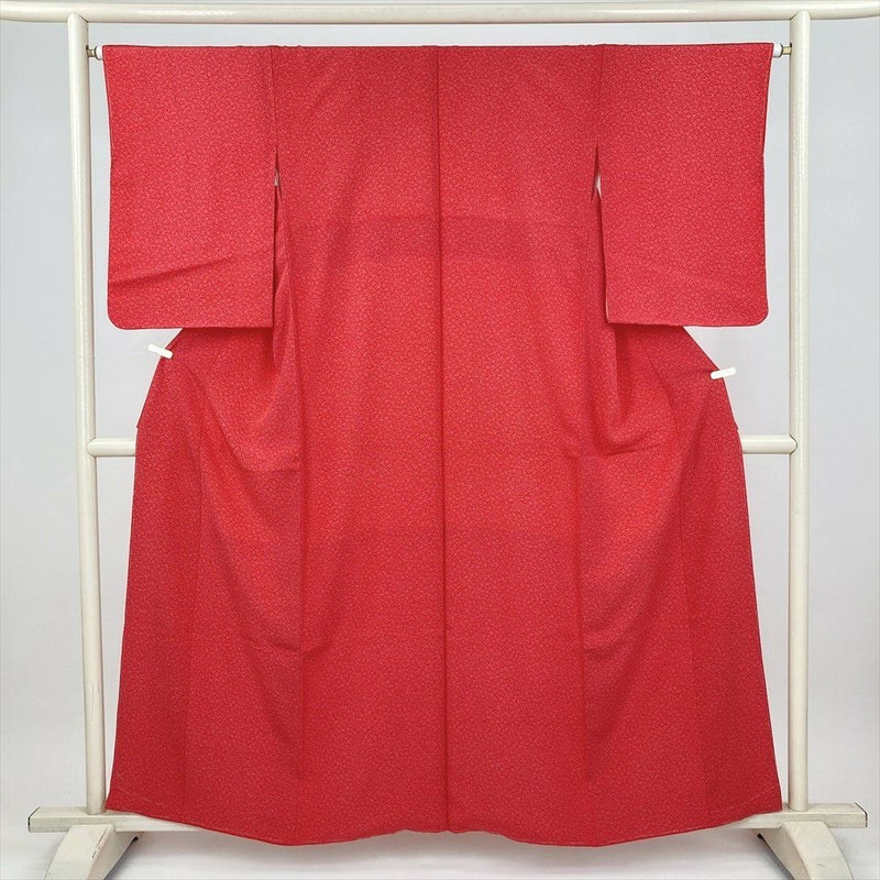 (中古) 江戸小紋 赤 カジュアル 袷 絹 【身丈】154cm【裄丈】65cm