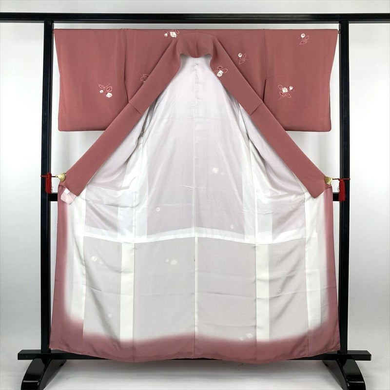 (中古)小紋 ピンク カジュアル 花 絞り染め 袷 S【身丈】158cm【裄丈】66.5cm