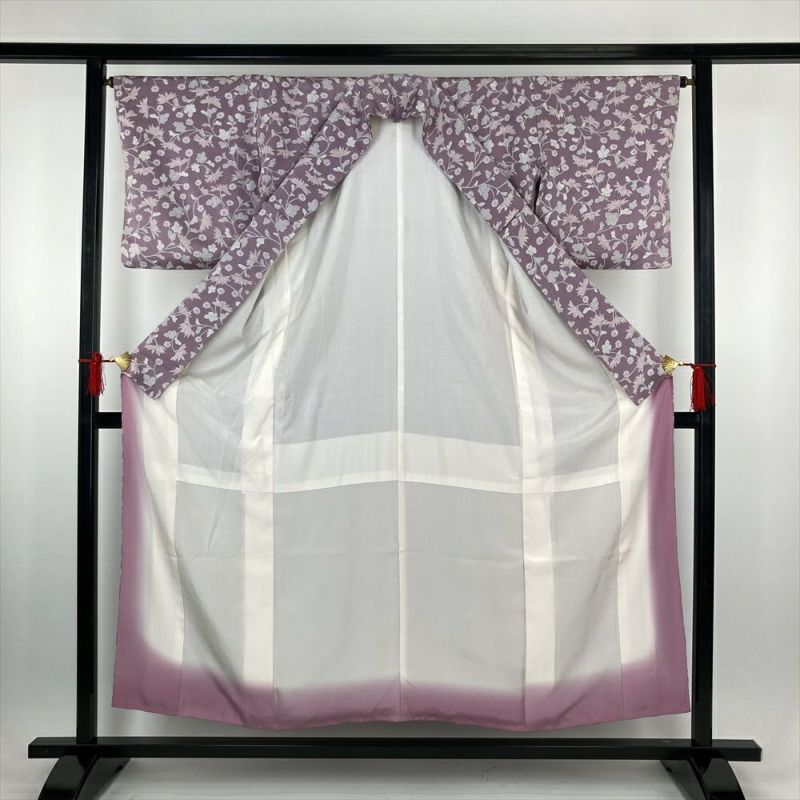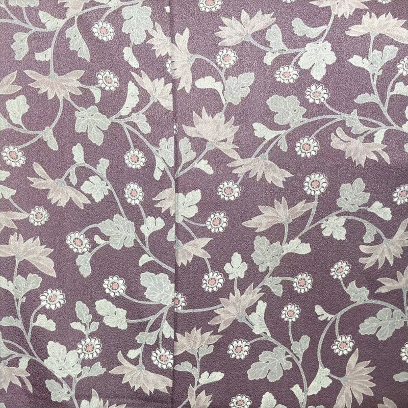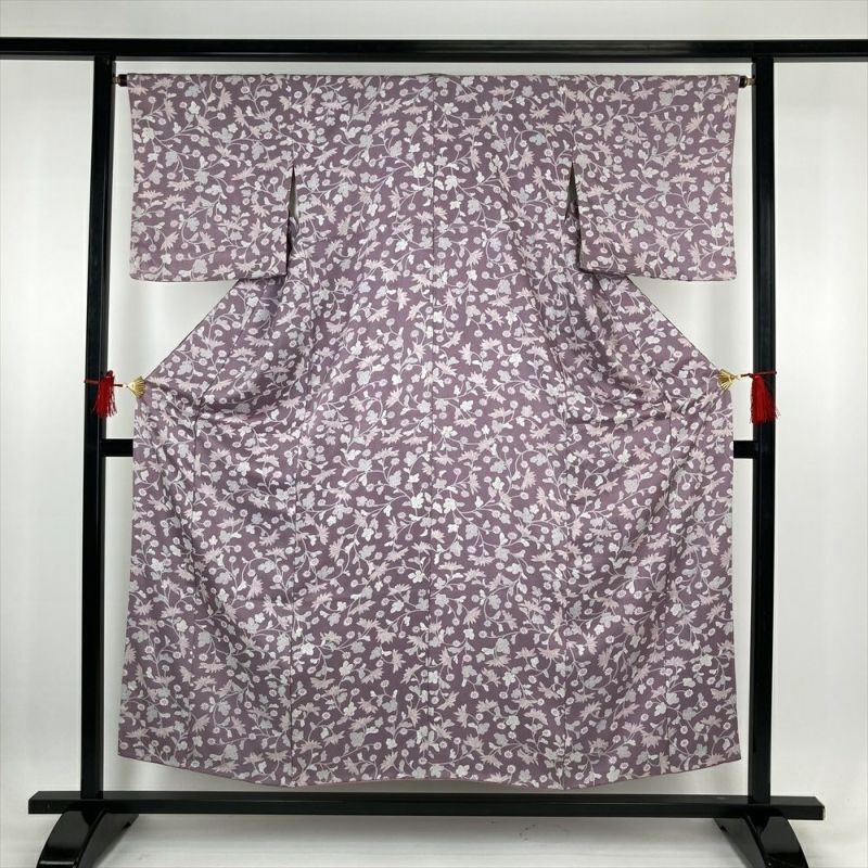(中古)小紋 紫 カジュアル 地紋織り 蔓 花 袷 SS【身丈】148.5cm【裄丈】66.5cm