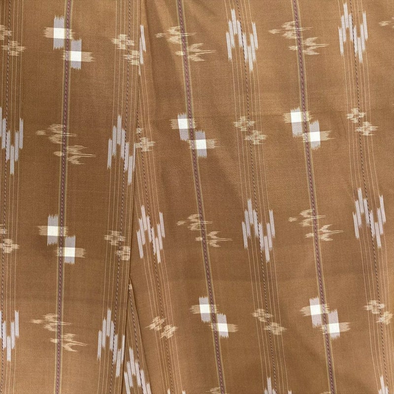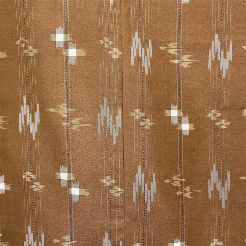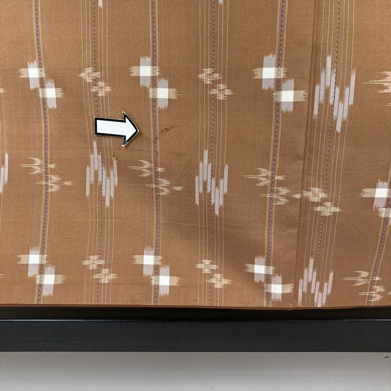 【色柄】薄茶 カジュアル 紬地 変わり縞 鳥 井戸 水 風