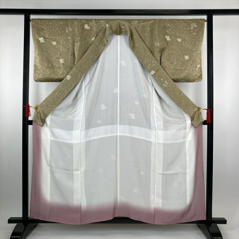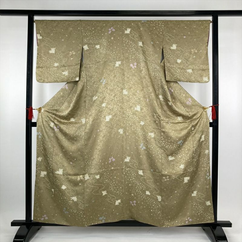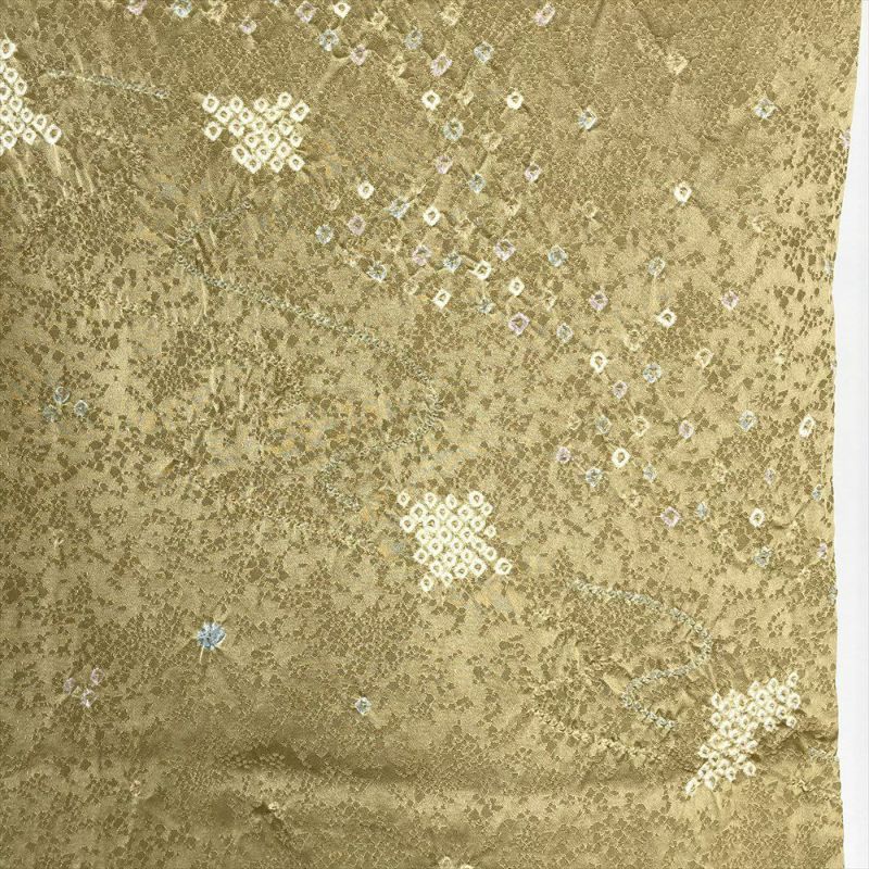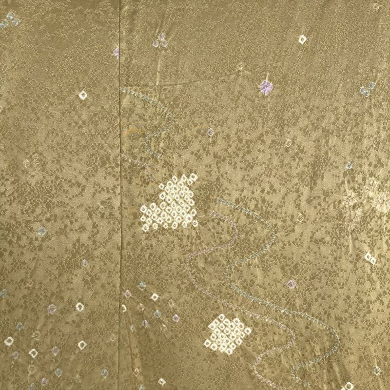(中古)小紋 鶯色 カジュアル 地紋織り 絞り 鹿の子 袷 SS【身丈】152.5cm【裄丈】68.5cm