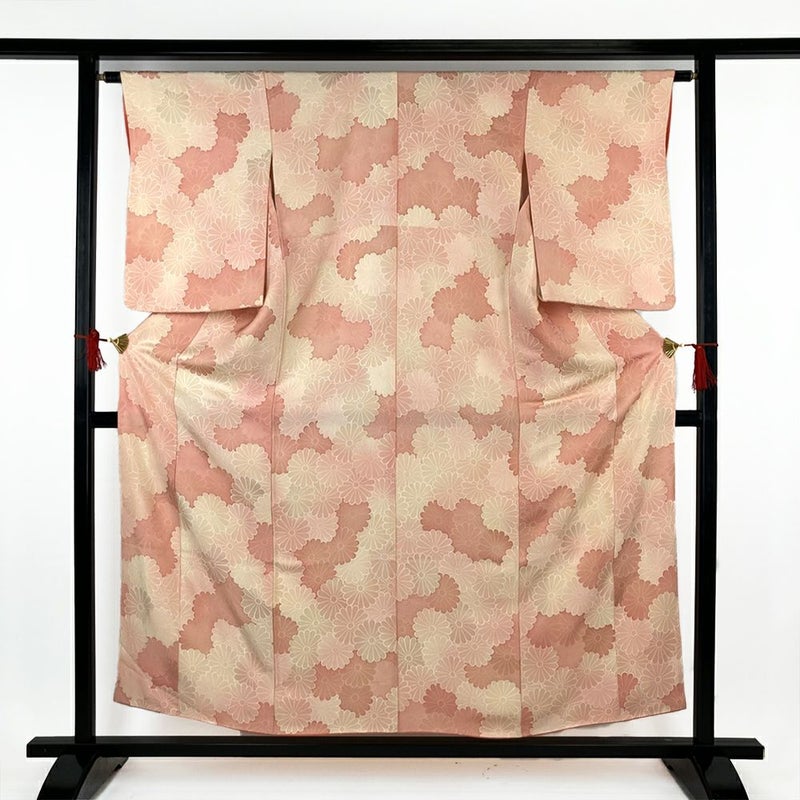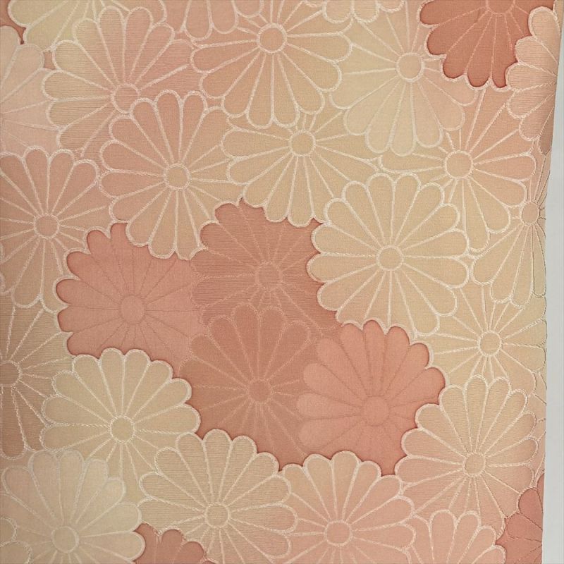 【色柄】サーモンピンク ベージュ カジュアル 地紋織り ぼかし染め 菊尽くし