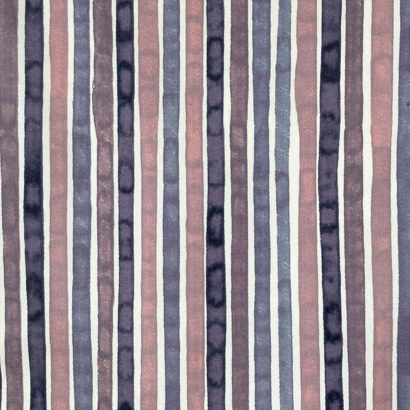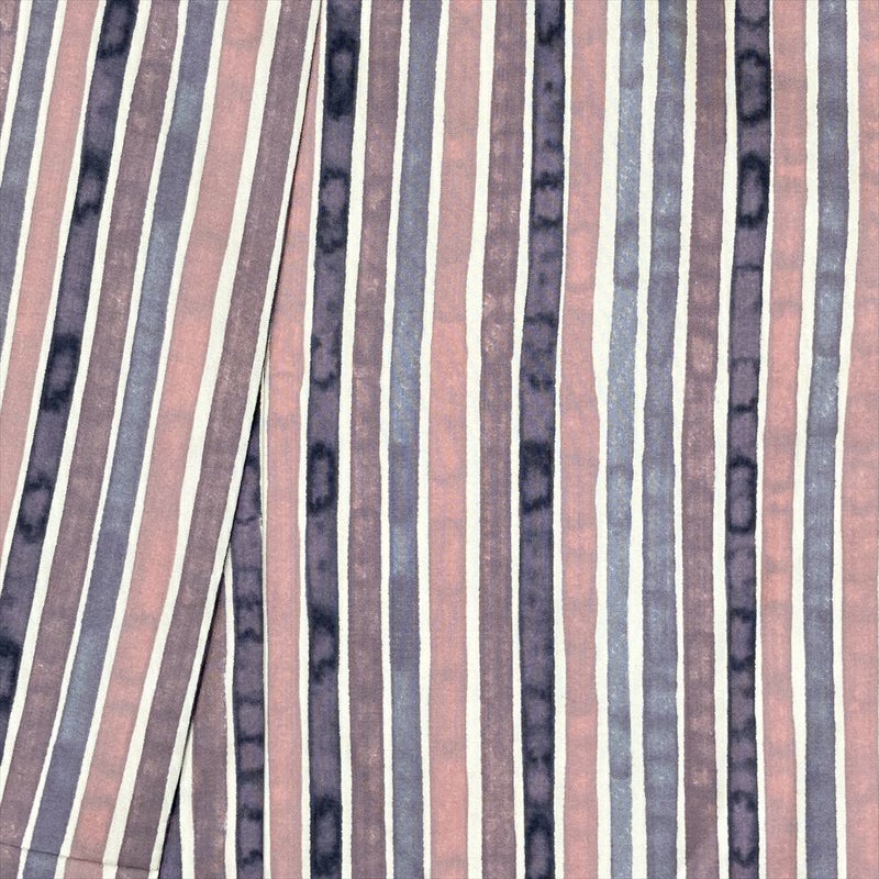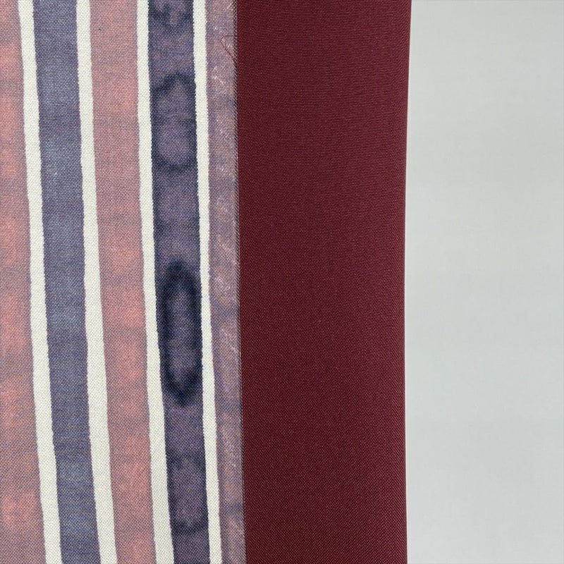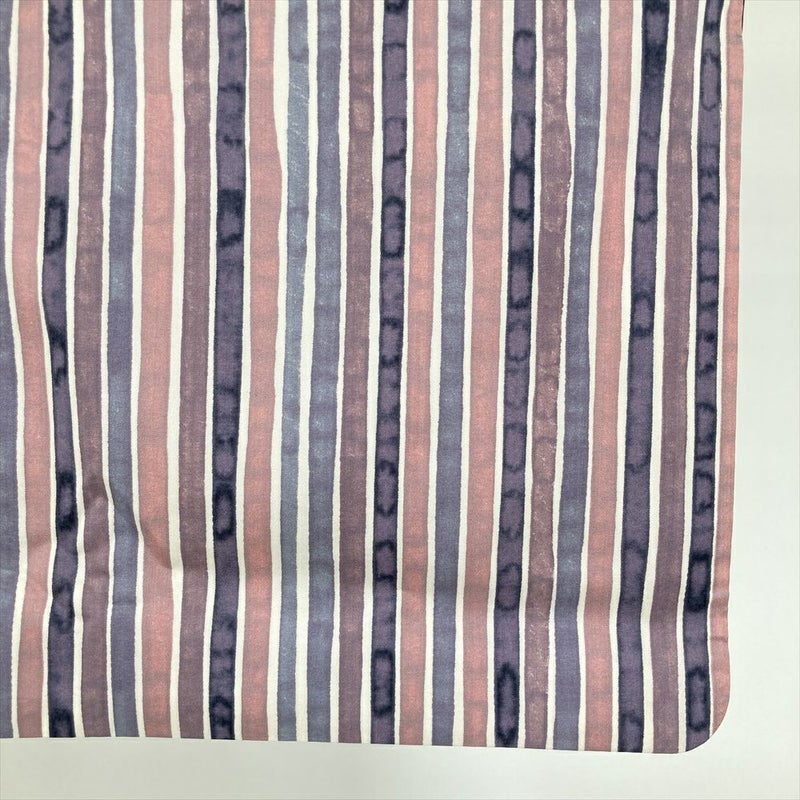 【色柄】紫 カジュアル 紬地 変わり縞 ろうけつ調