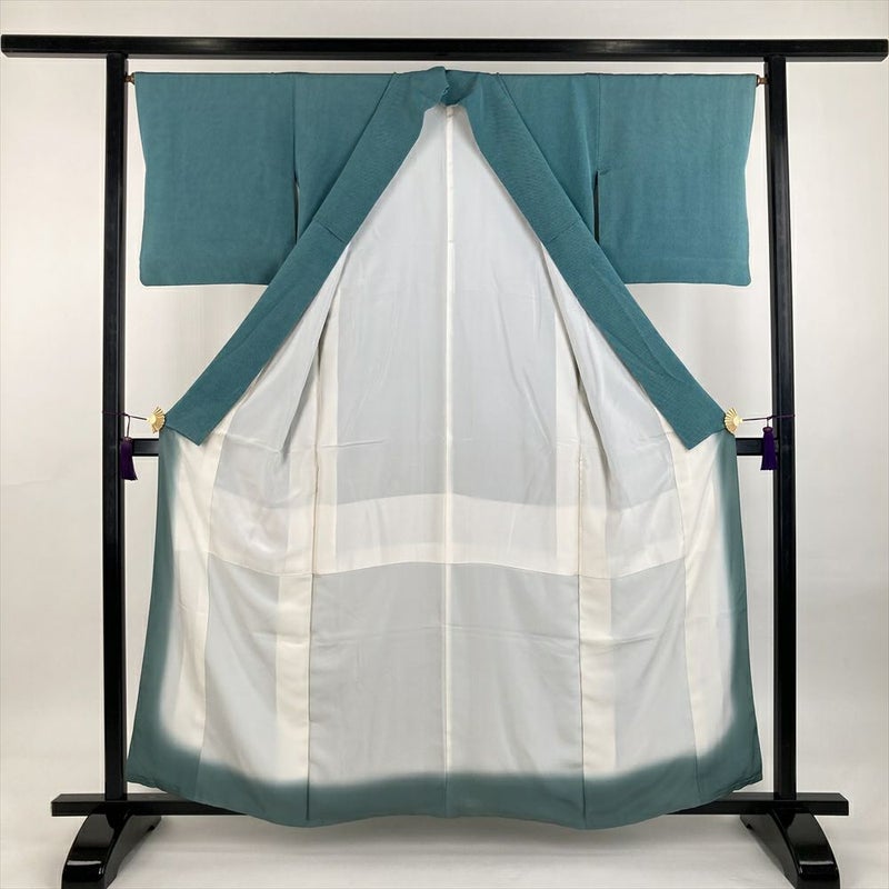 【色柄】孔雀色 青緑 カジュアル ちりめん 染め 行儀