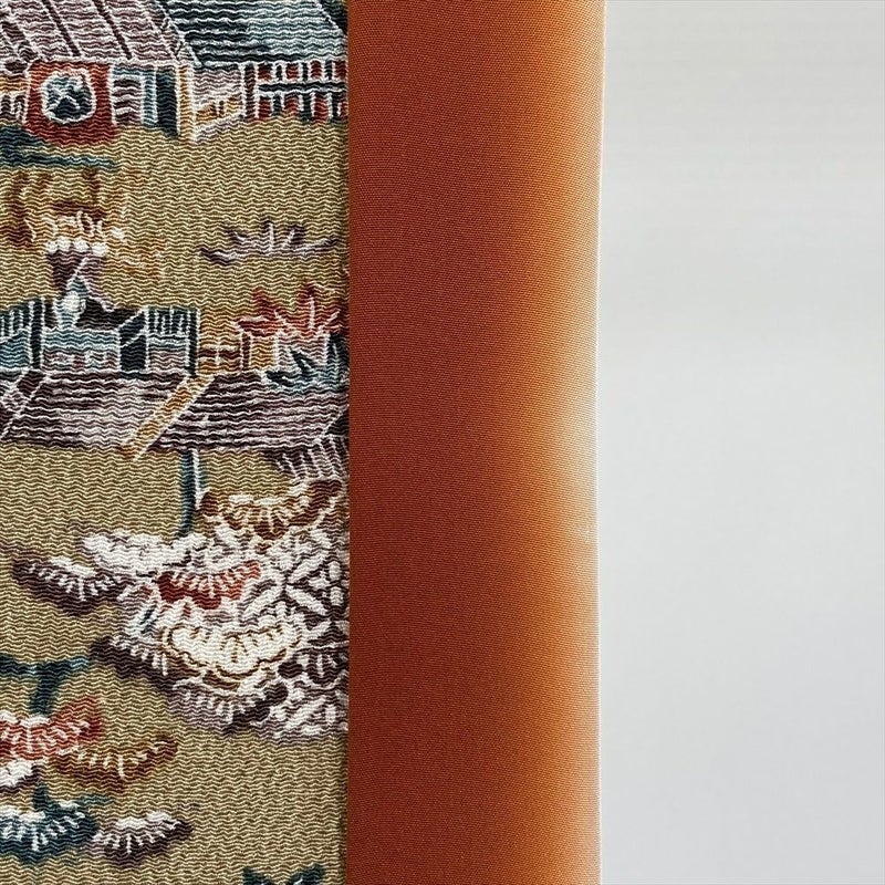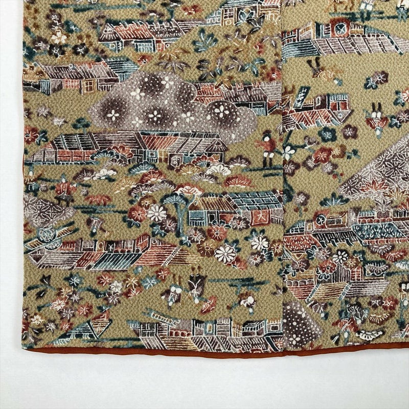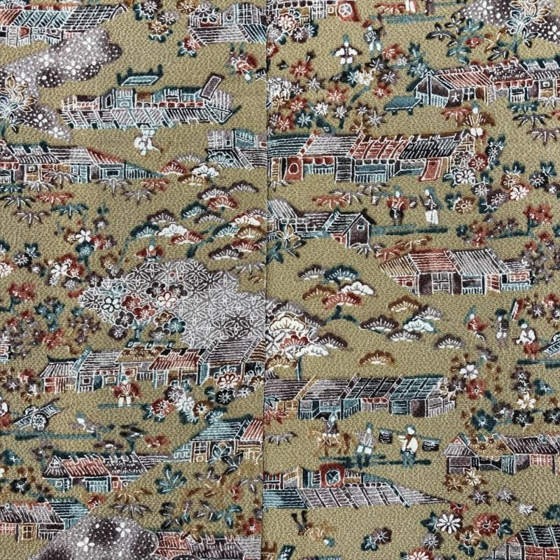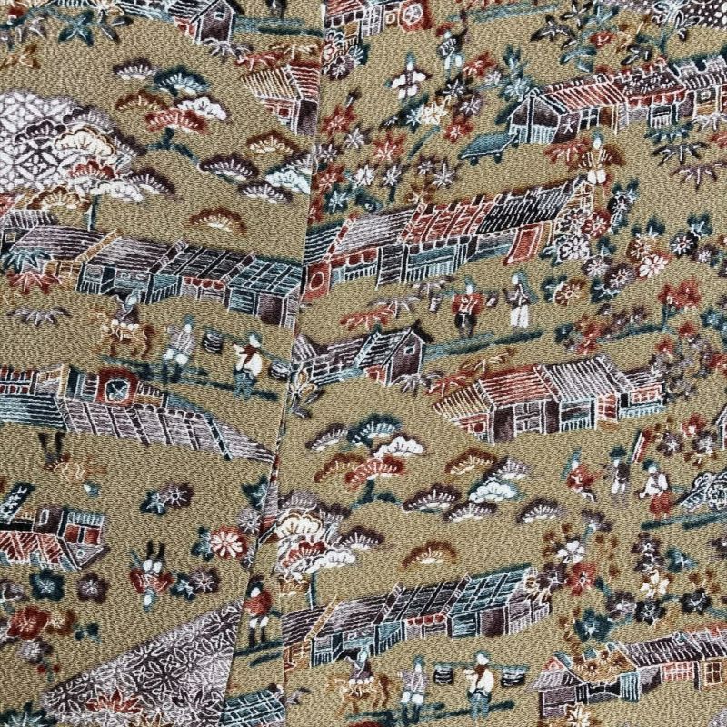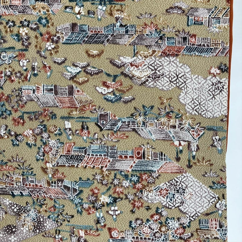 【色柄】サンドベージュ カジュアル ちりめん 染め 切り嵌め 古い町並み 風景
