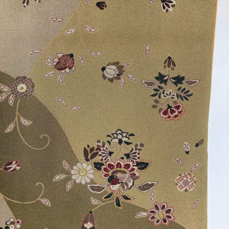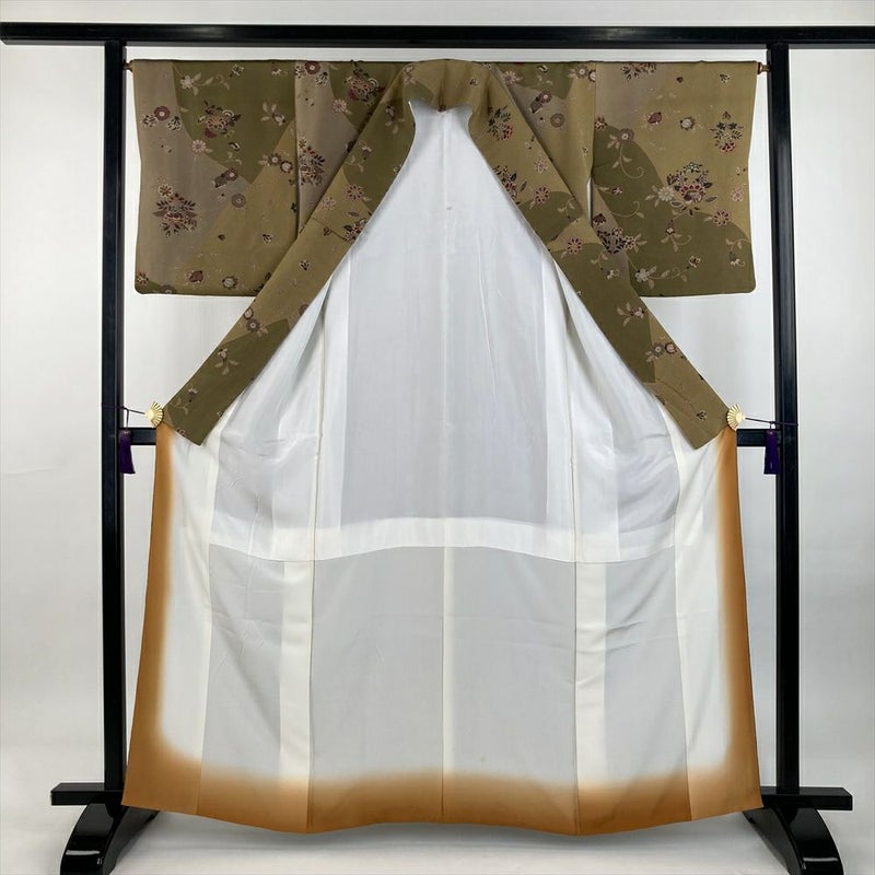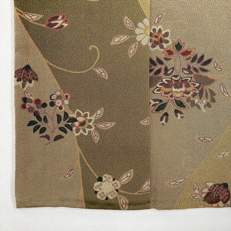 【色柄】柳茶 カーキ 緑 カジュアル ちりめん 染め 割り付け 唐花