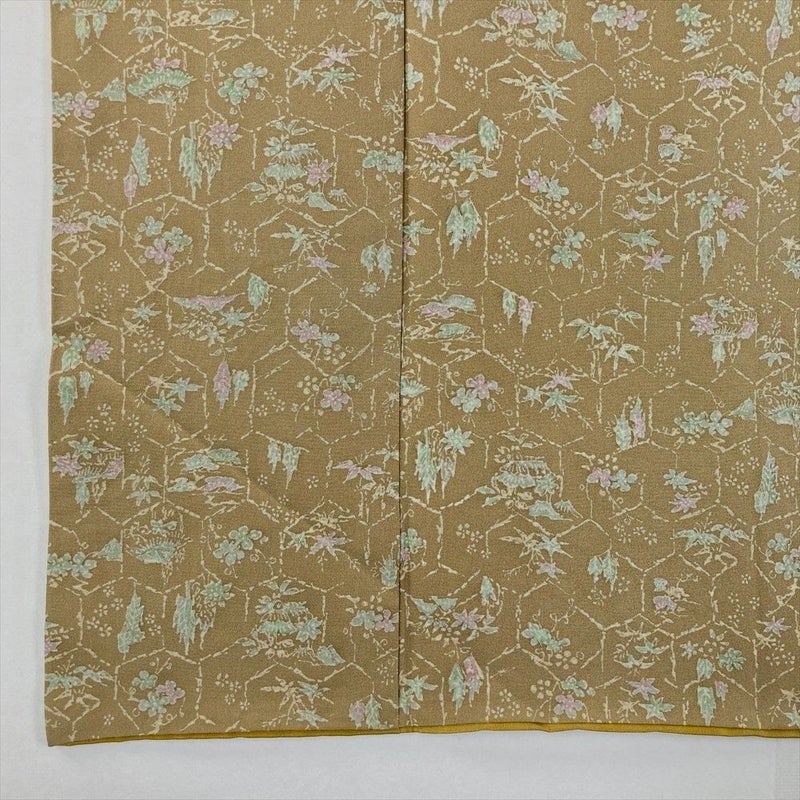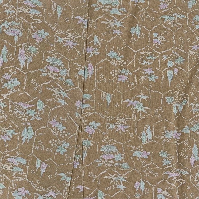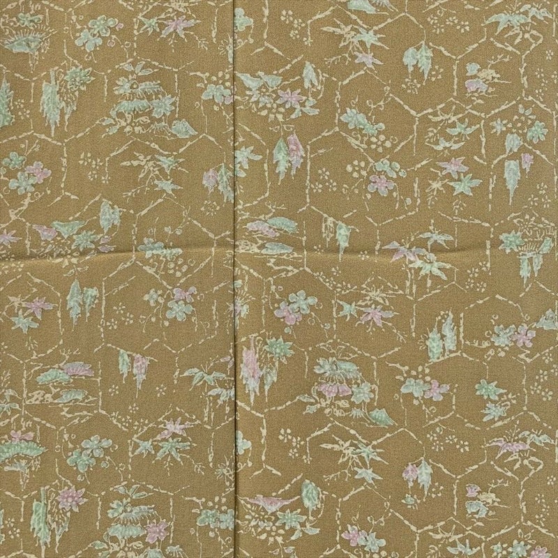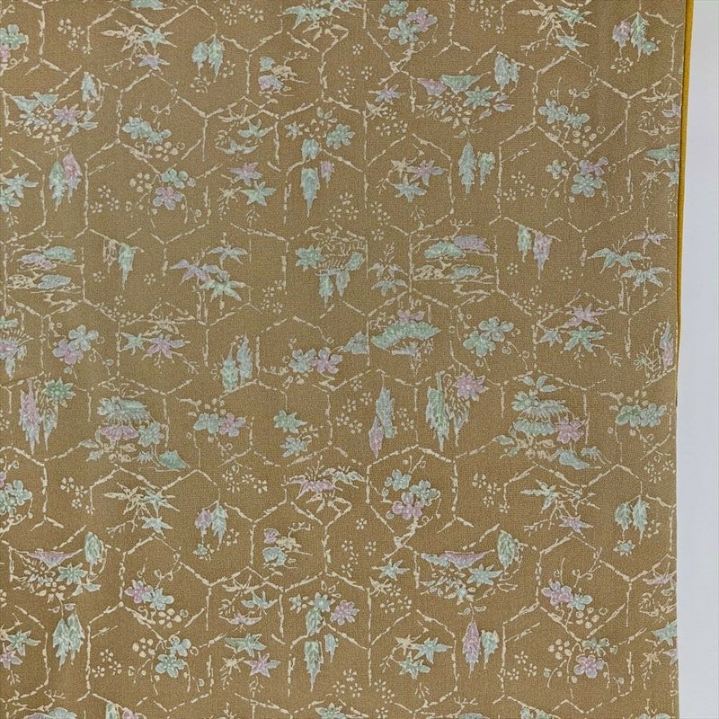 【色柄】灰茶色 ベージュ系 カジュアル ちりめん 破れ亀甲 四季花 家屋