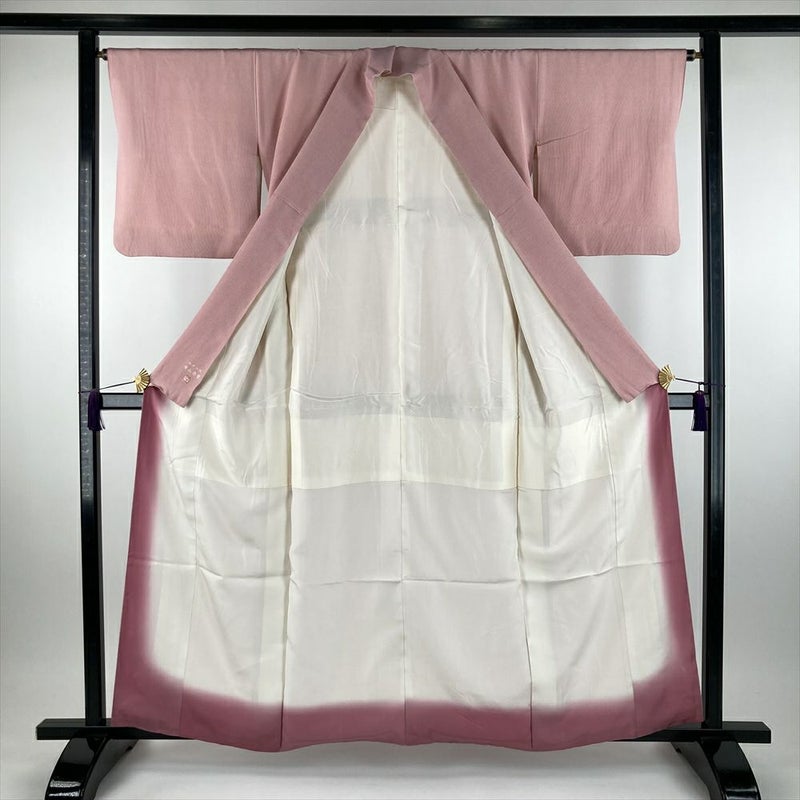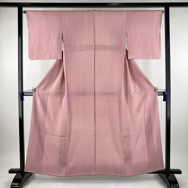 (中古) 小紋 桜色 ピンク系 カジュアル ちりめん 伊勢型 万筋柄 袷 SS 【身丈】154.5cm【裄丈】64.5cm
