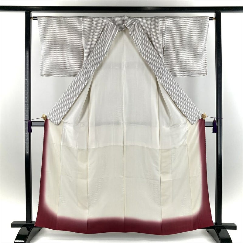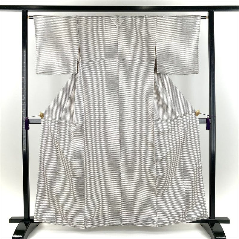 (中古) 小紋 生成り色 白系 カジュアル 地紋織り 亀甲つなぎ ハチの巣 袷 S 【身丈】158cm【裄丈】63.5cm