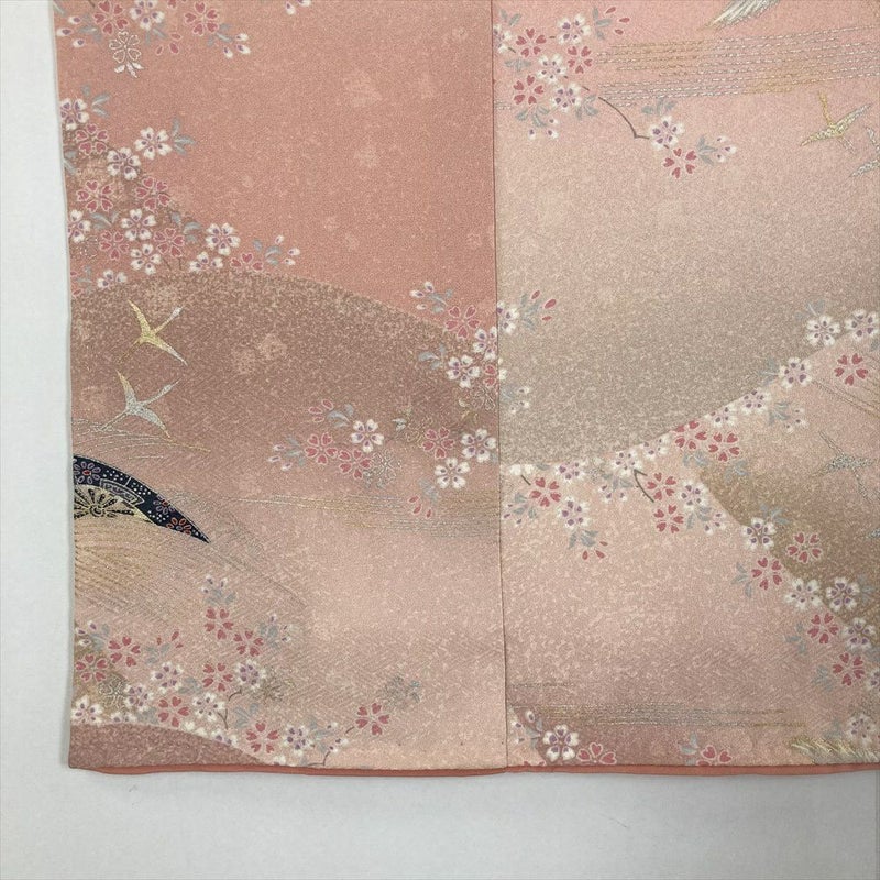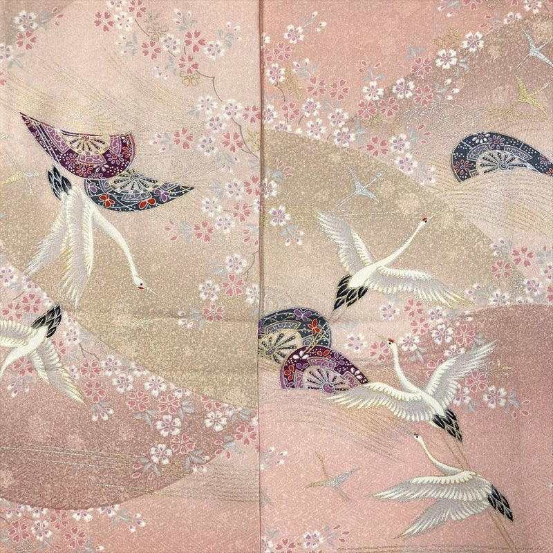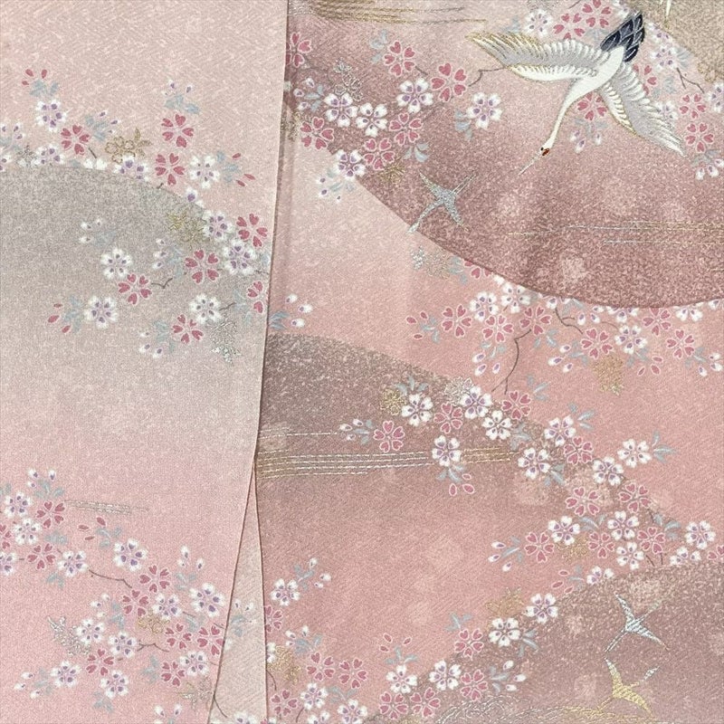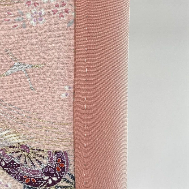 【色柄】ピンク色 カジュアル 地紋織り 花鳥 流水 源氏車