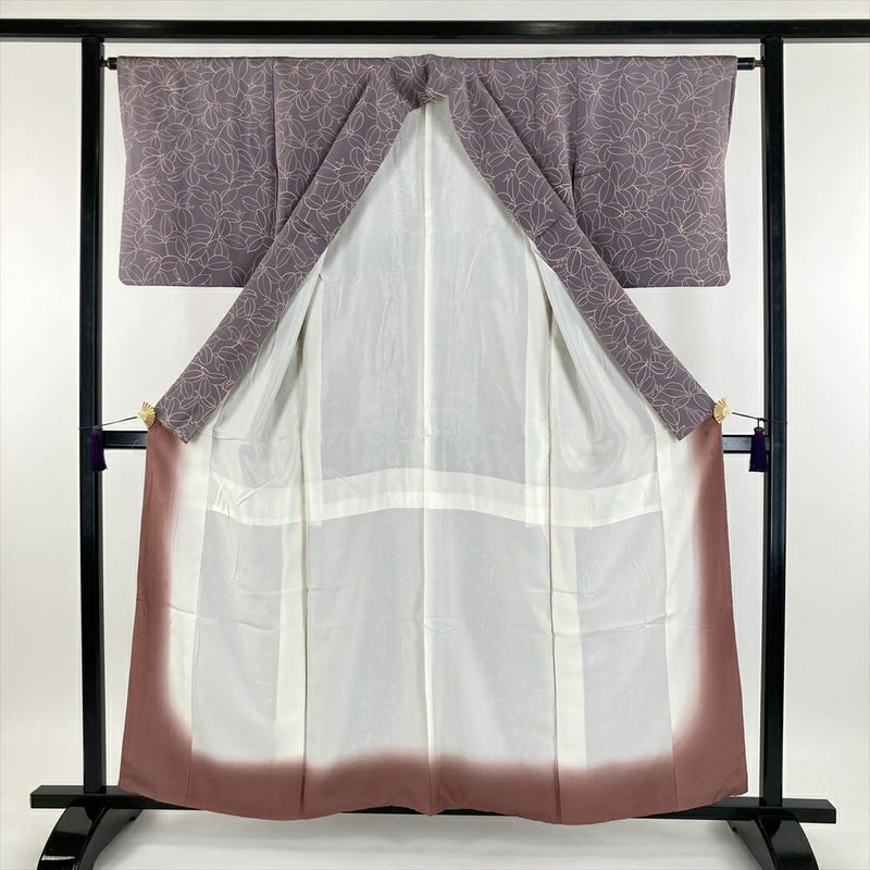 (中古) 小紋 紫色 カジュアル 植物 葉と実 袷 SS【身丈】154cm【裄丈】63.5cm