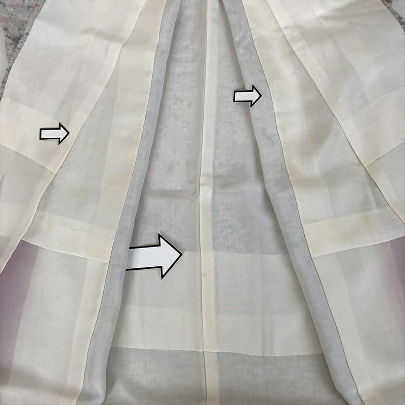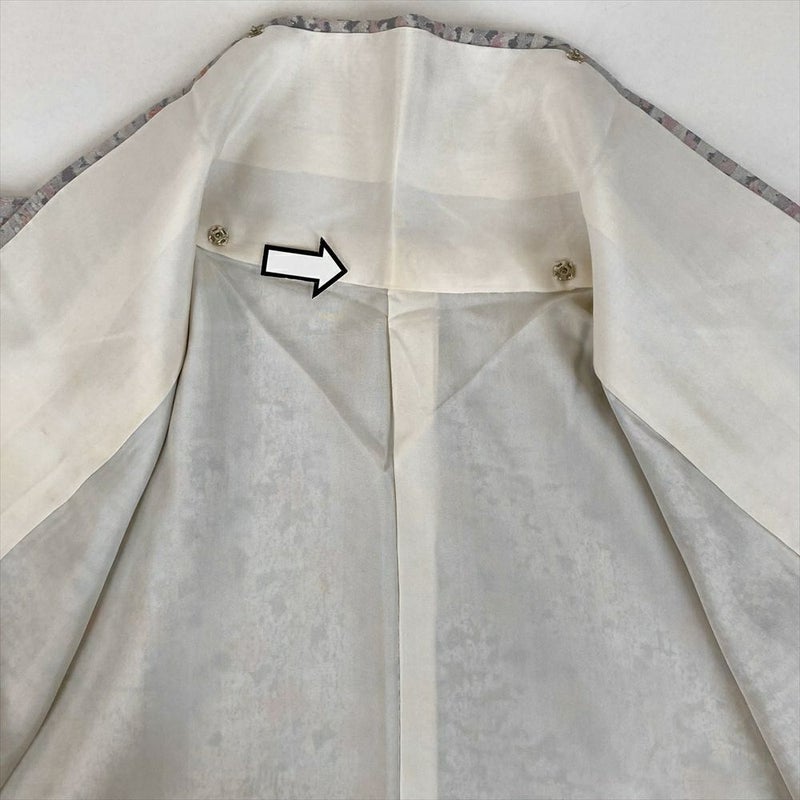 お洒落な街着として、ちょっとしたお出かけや、お稽古着としてお使いいただけるお着物です。衿裏に薄黄色のシミ汚れがございます保存臭がややございます。胴裏の全体にシミがございます。