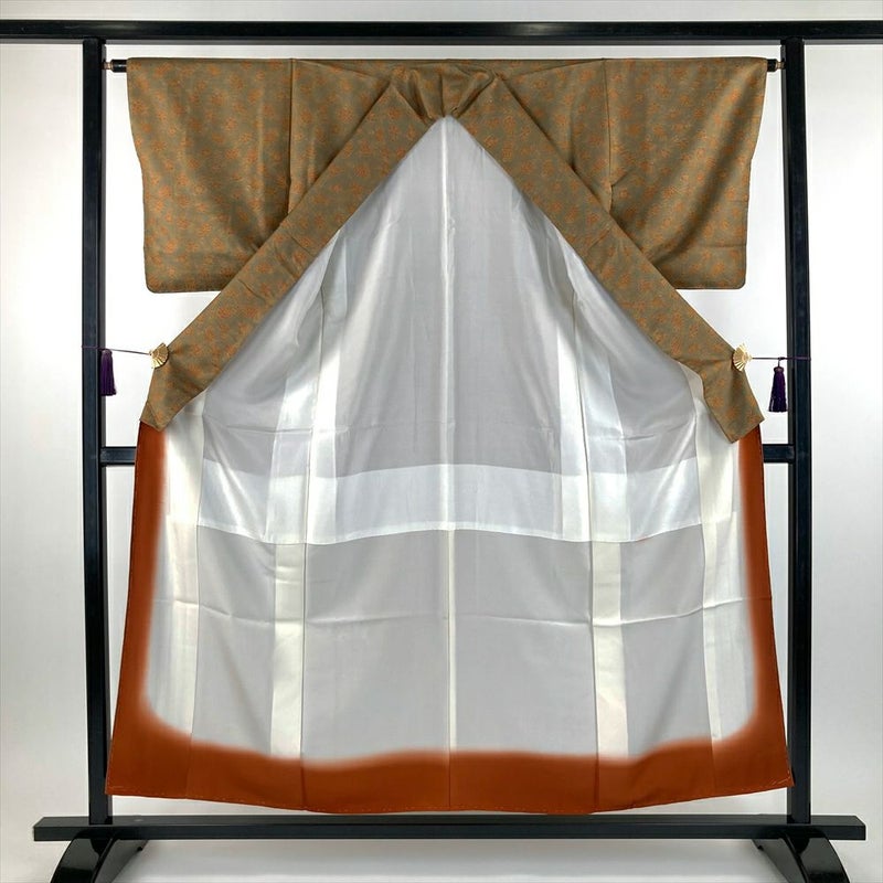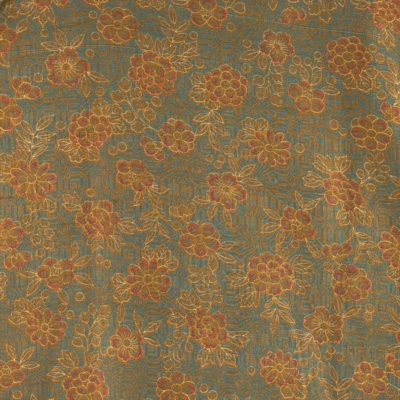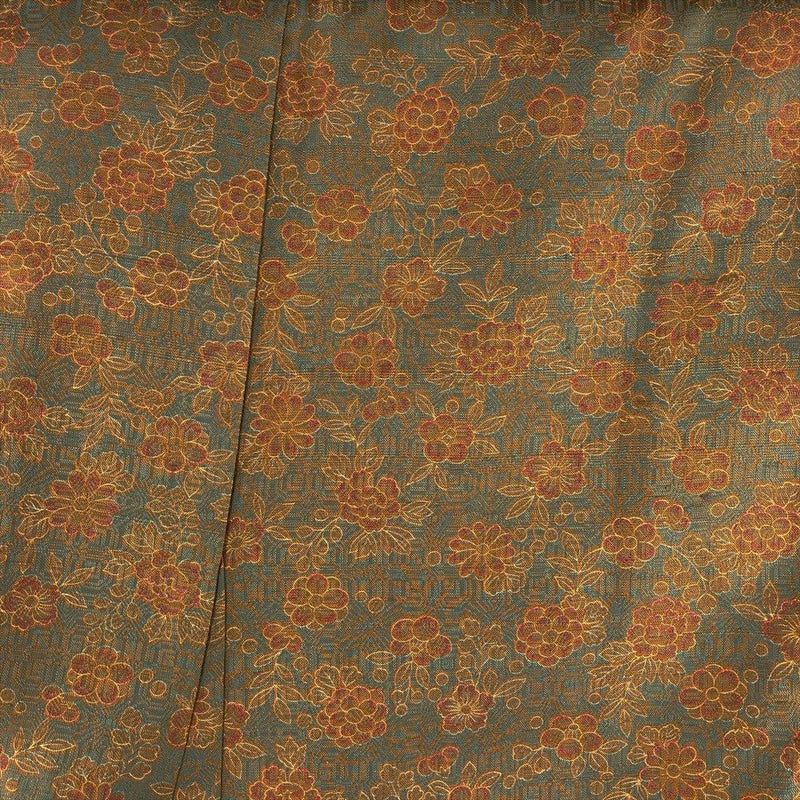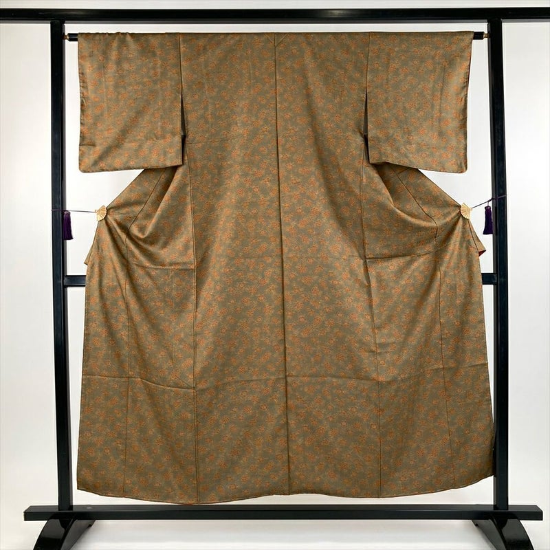 【色柄】灰緑色 カジュアル 地紋織り 染め 菊