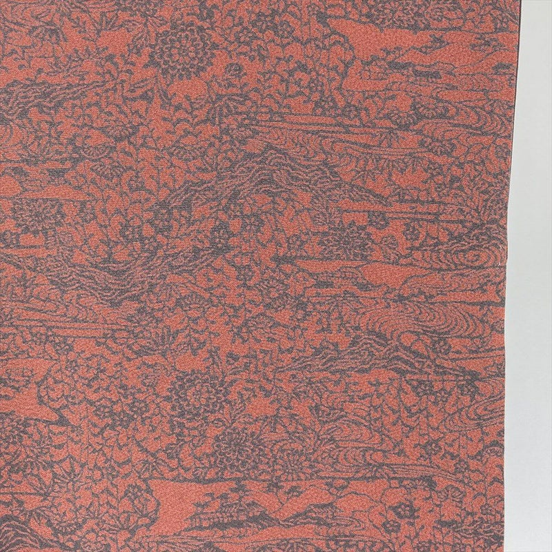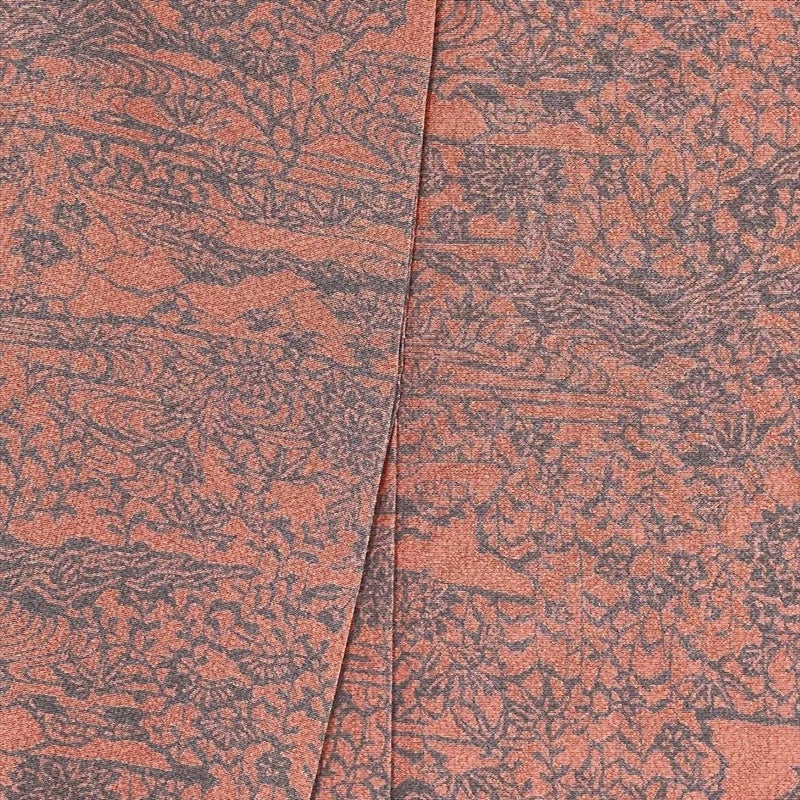 【色柄】珊瑚色 濃ピンク色 カジュアル ちりめん 染め 四季花 流水