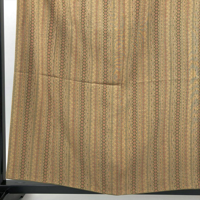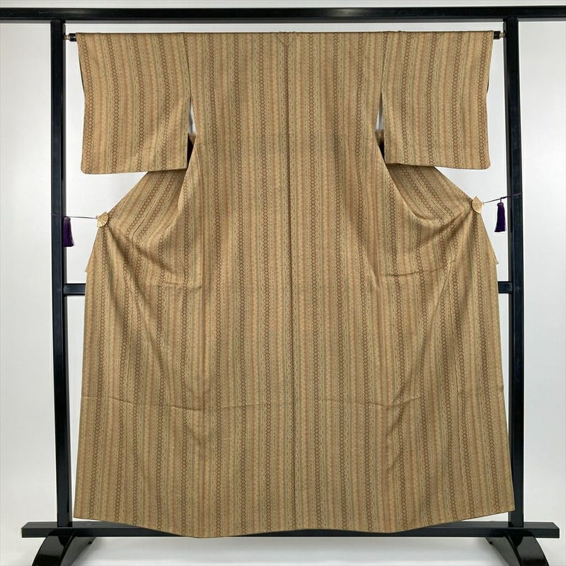 (中古) 小紋 芥子色 からし色 カジュアル ちりめん 染め 植物 袷 S 【身丈】155.5cm【裄丈】65cm