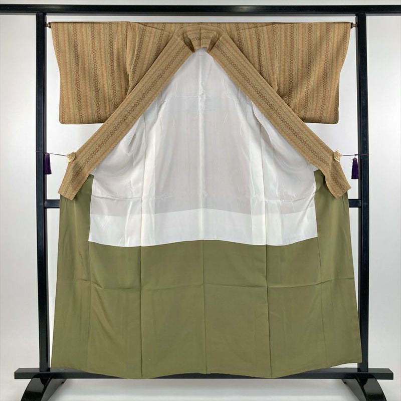 お洒落な街着として、ちょっとしたお出かけや、お稽古着としてお使いいただけるお着物です。保存臭がややございます。西武のタグあり