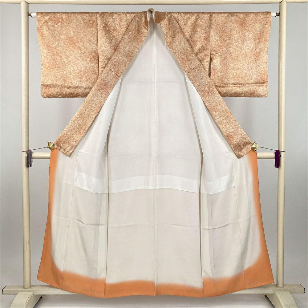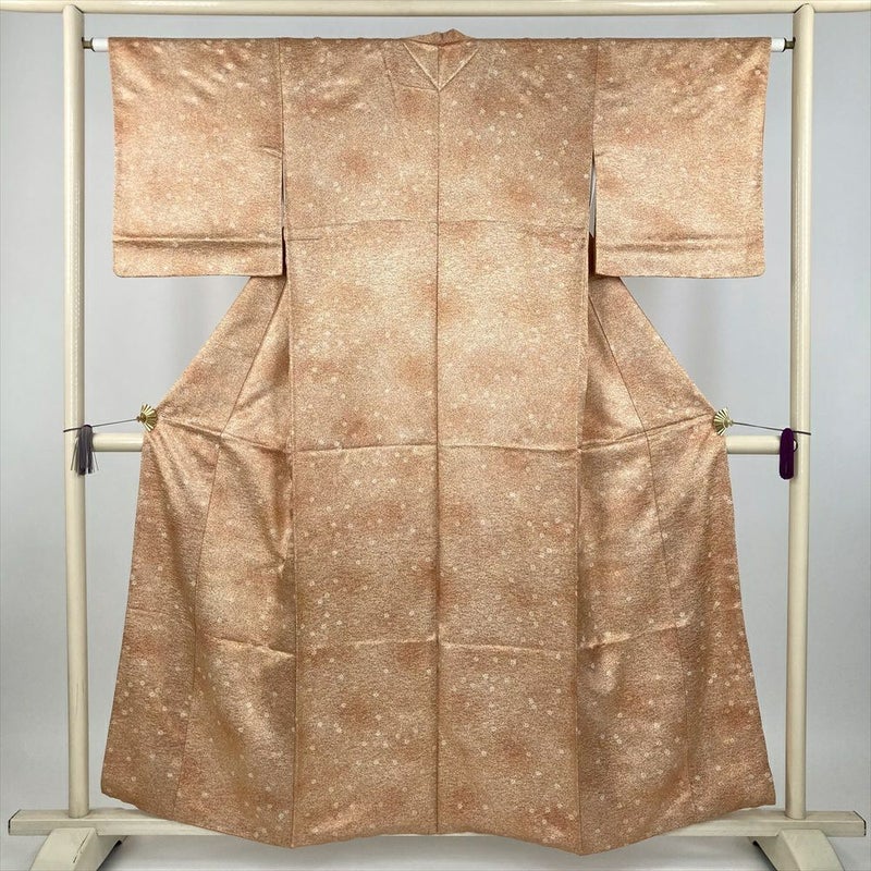 (中古) 小紋 オレンジ 柿色 カジュアル たたき染め 地紋織り 小花散らし 袷 絹【身丈】151cm【裄丈】63.5cm
