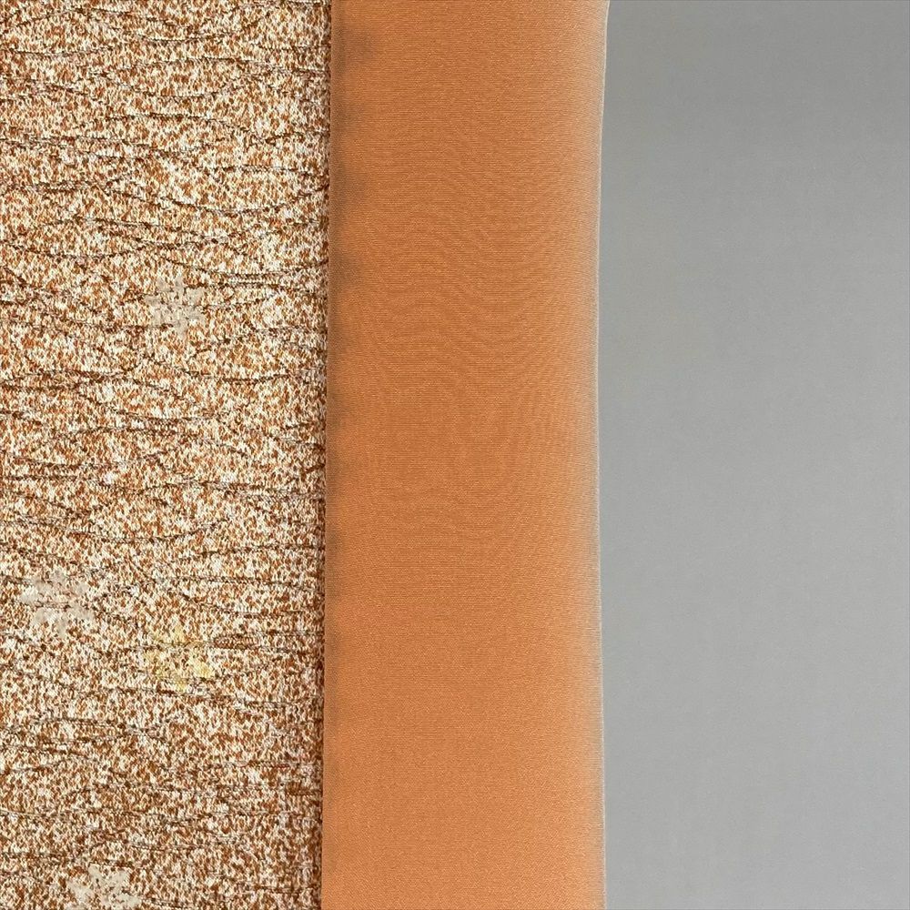 【色柄】オレンジ 柿色 カジュアル たたき染め 地紋織り 小花散らし