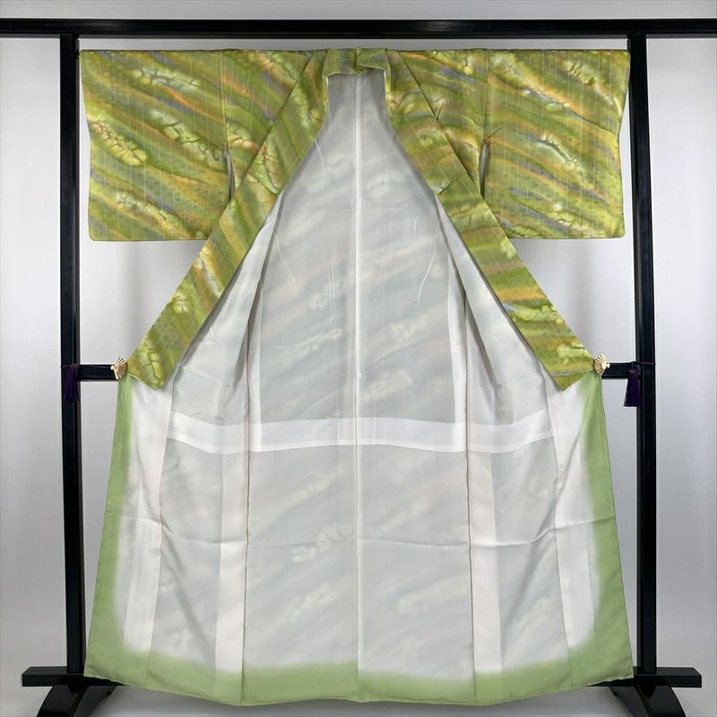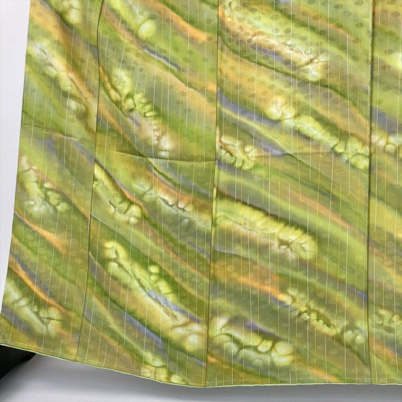 【色柄】黄緑色 カジュアル 地紋織り 染め レトロモダン