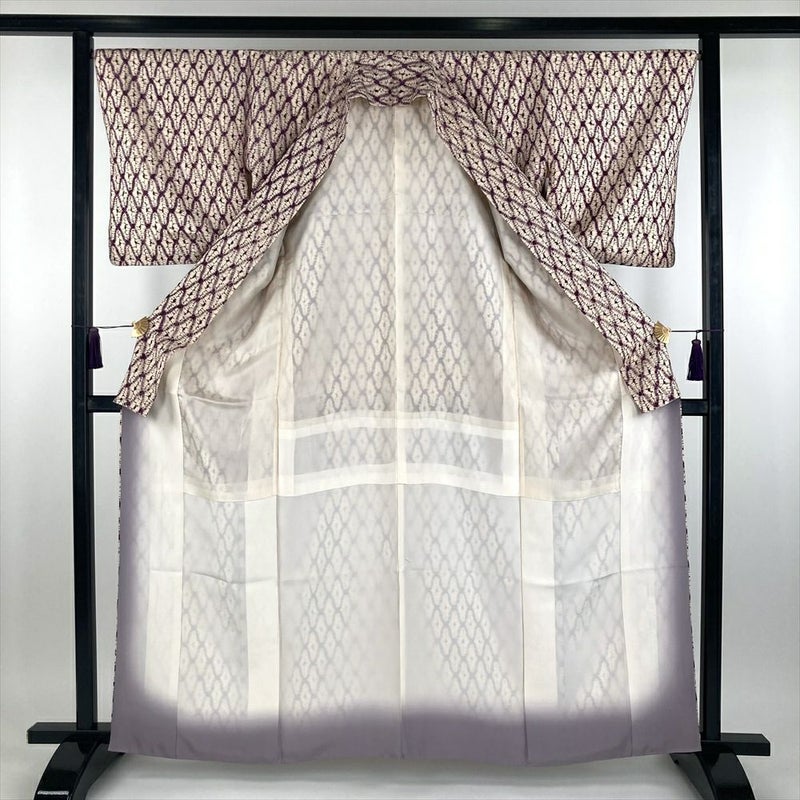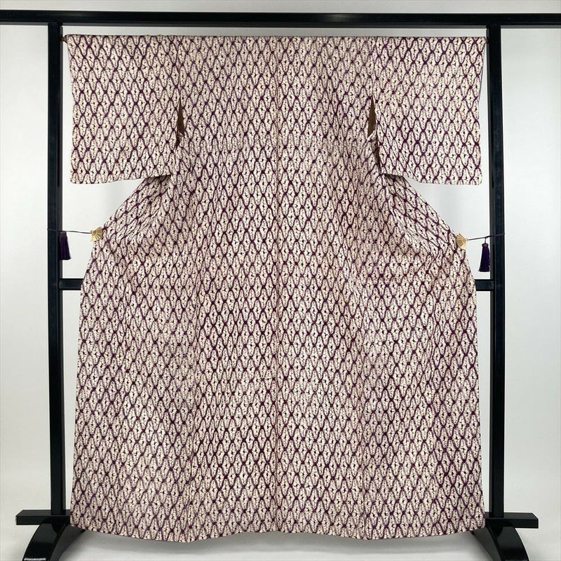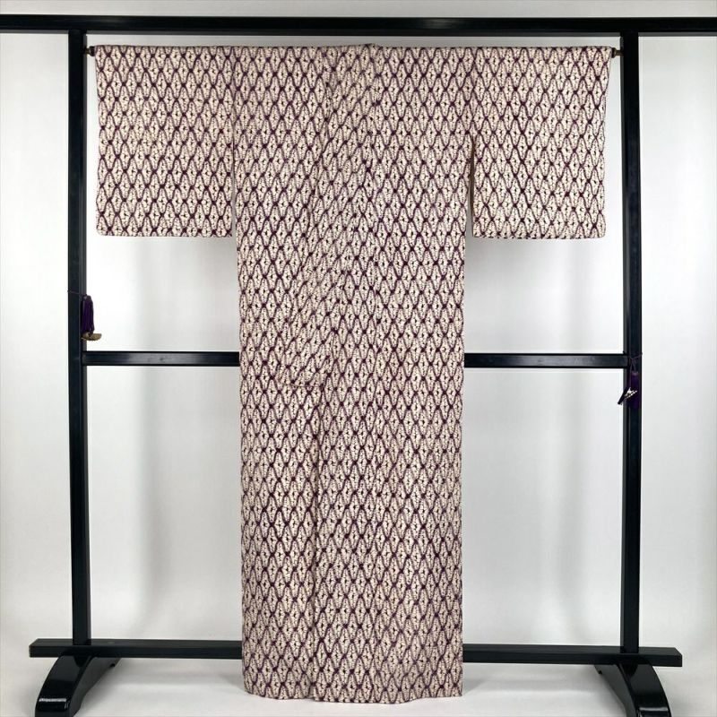 (中古) 紫根染 小紋 紫色/生成り色 カジュアル 絞り 網目 袷【身丈】160cm【裄丈】67cm