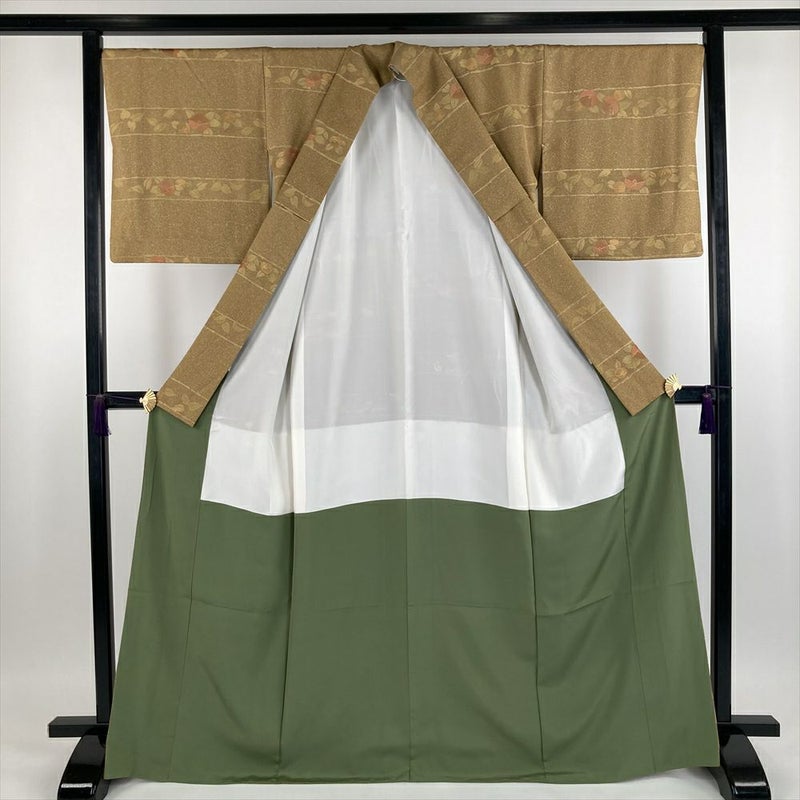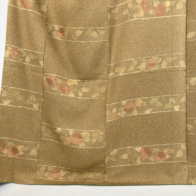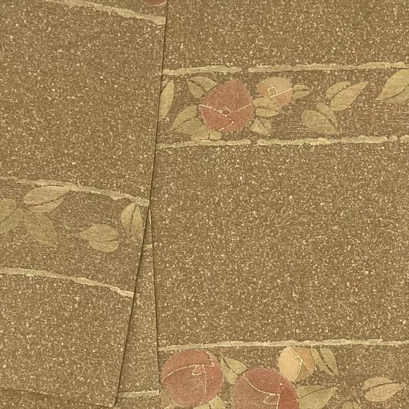 【色柄】黄色 芥子色 カジュアル 地紋織り 染め 金彩 椿