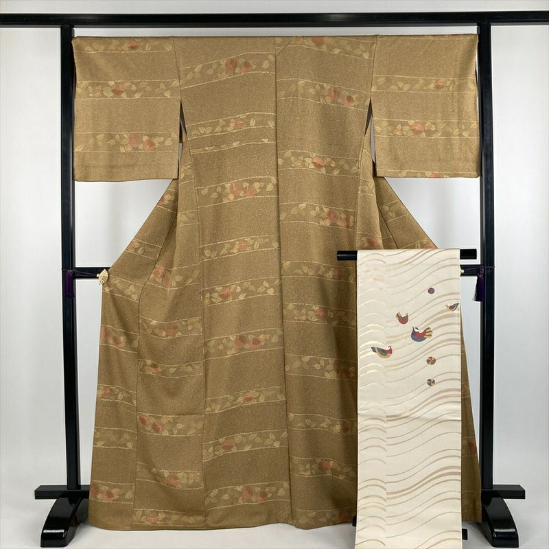 お出かけにぴったりな、カジュアルな小紋着物。帯を替えるだけで、印象がガラリと変わります。普段使いも、特別な日も、この一枚で決まり。【シーン別におすすめの帯】普段使いには半幅帯:軽くて扱いやすく、カジュアルな装いにぴったりです。九寸名古屋帯:染めや織りのものがおすすめです。お出かけには九寸名古屋帯:華やかすぎないものが好適です。保存臭がややございます。
