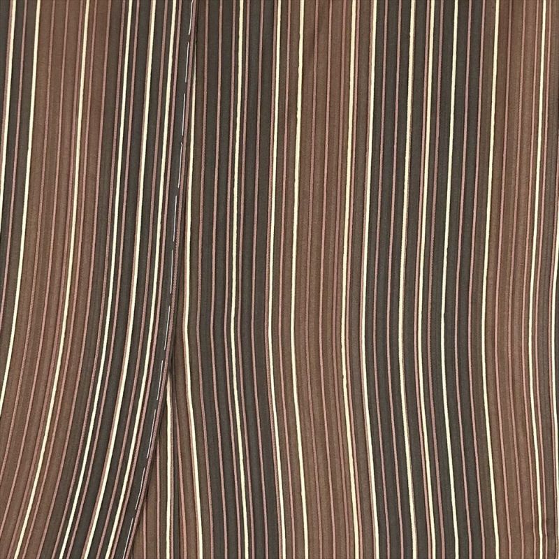 深みのある茶色が織りなす、秋らしい温もり。 変わり縞の流れるような曲線が、大人の女性の品格を際立たせます。