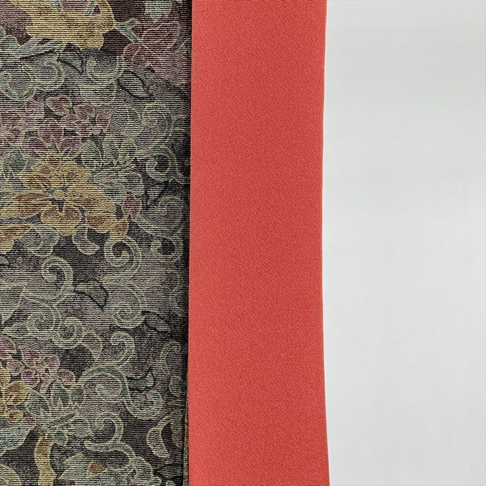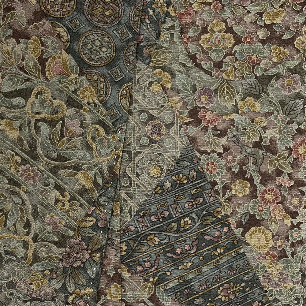 【色柄】グレー 灰緑色 カジュアル ちりめん 染め 更紗調