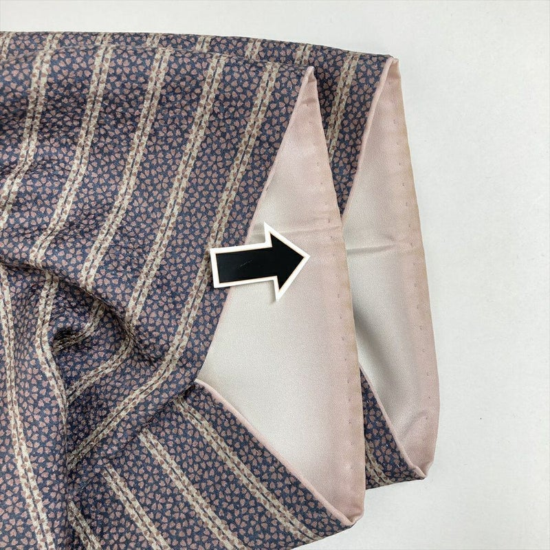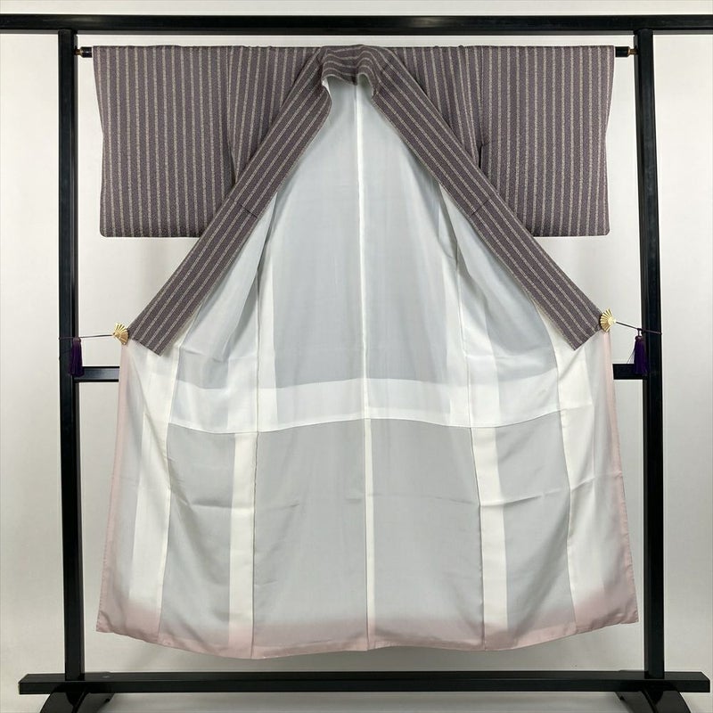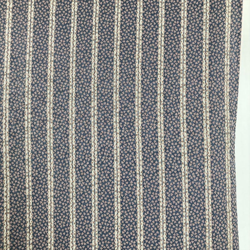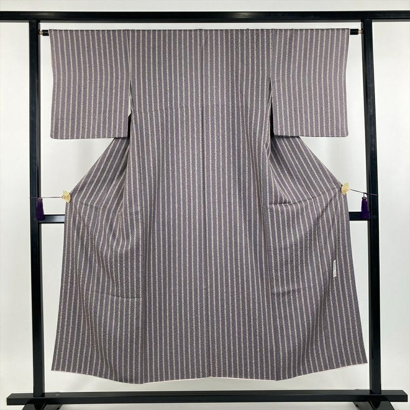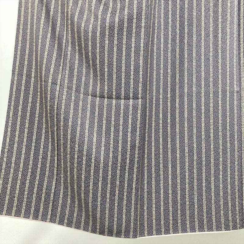 (中古) 小紋 ブルーグレー カジュアル 染め 縞 桜 袷 【身丈】145cm【裄丈】63.5cm
