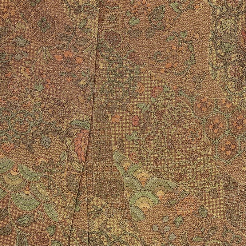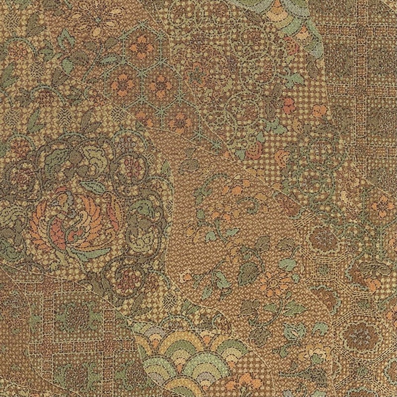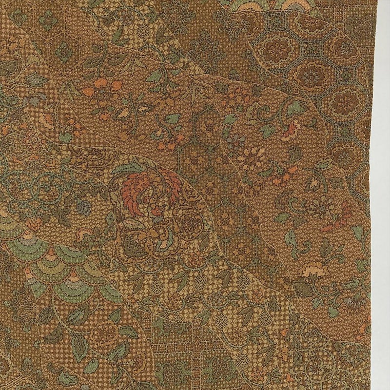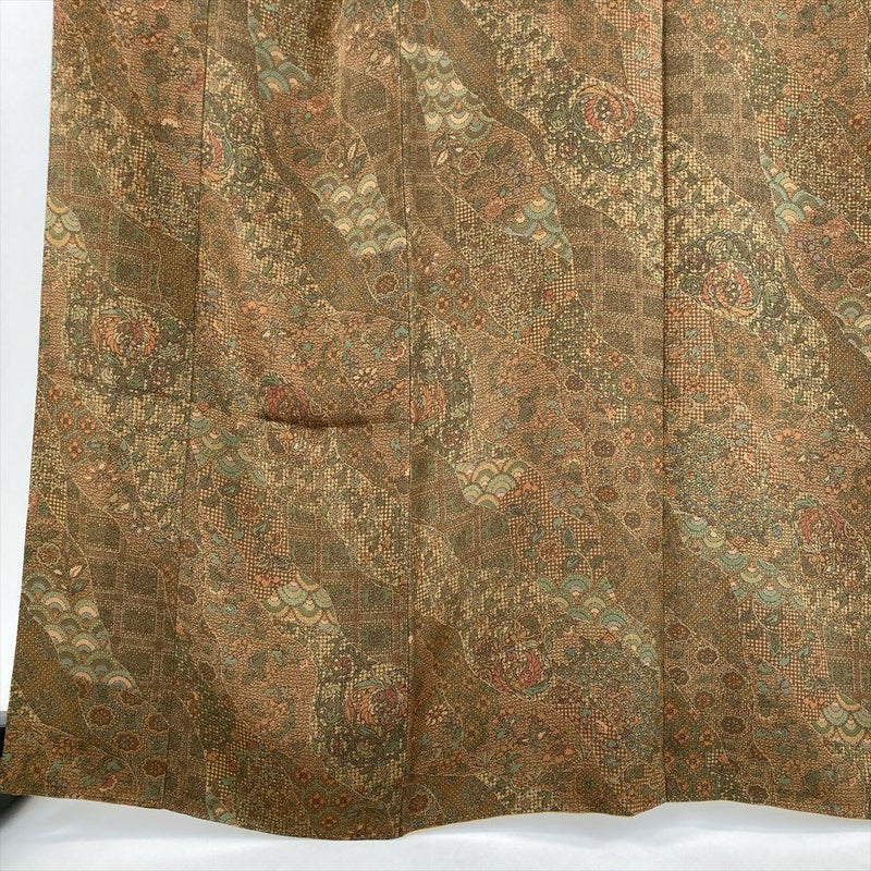 【色柄】茶色 カジュアル ちりめん 染め 鳳凰 唐草 青海波