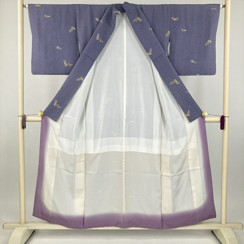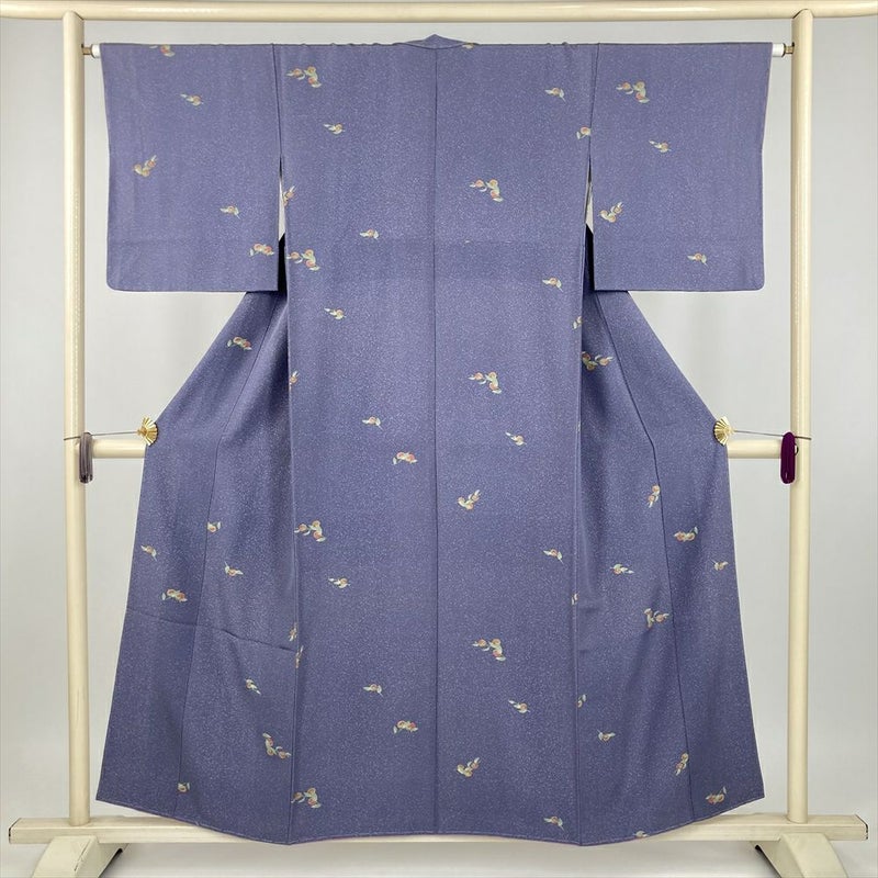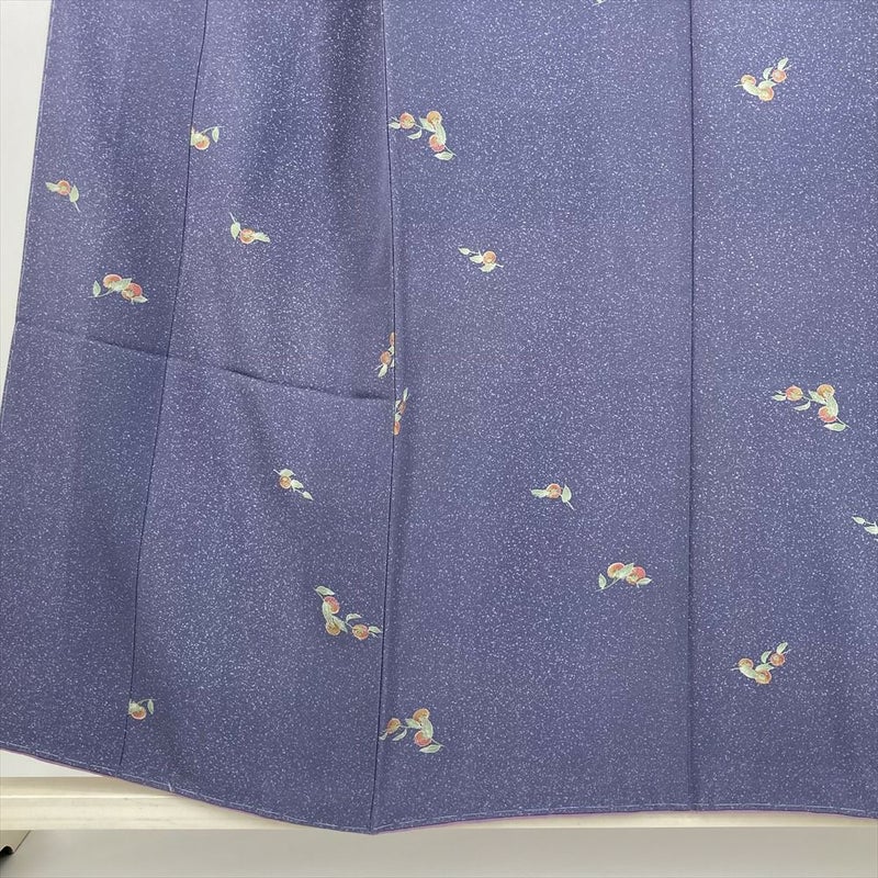 (中古) 小紋 紫 藤色 カジュアル たたき染め ちりめん 蜜柑 袷 絹【身丈】150cm【裄丈】65cm