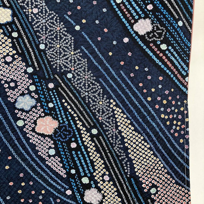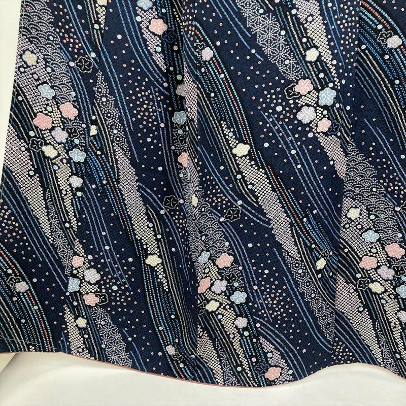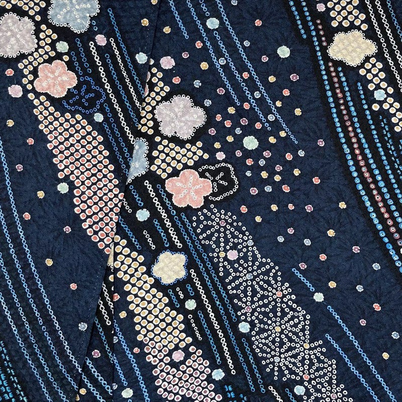 【色柄】紺色 カジュアル 地紋織り 染め 鹿の子柄