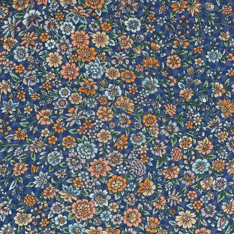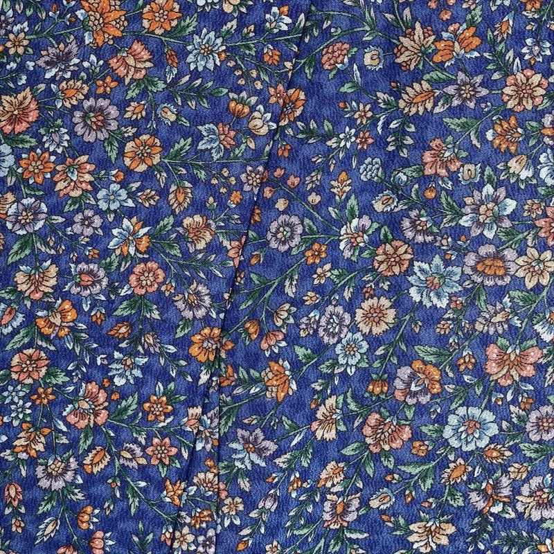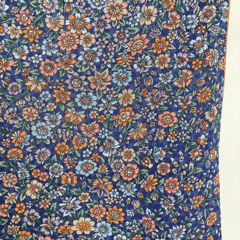 【色柄】青 藍色 カジュアル ちりめん 染め 花柄
