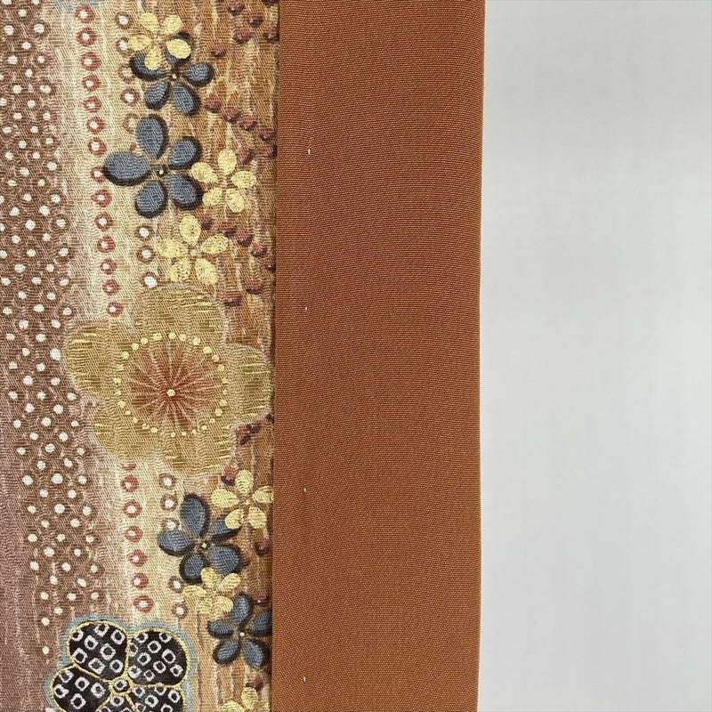 【色柄】オレンジ 赤朽葉色 カジュアル 地紋織り 染め 金彩 花蝶