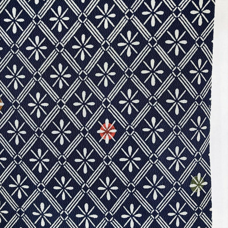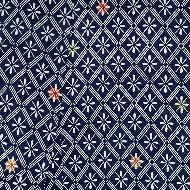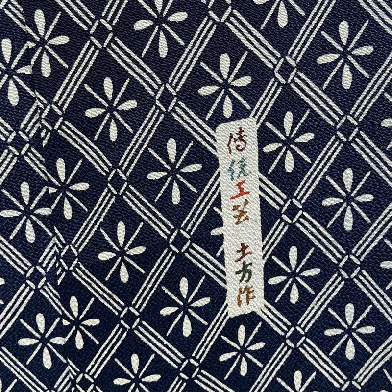 【色柄】紺色 カジュアル 伝統工芸土方 ちりめん 染め 斜め格子