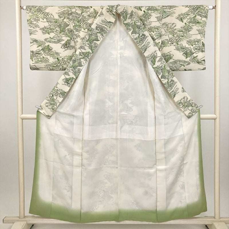 (中古) 小紋 アイボリー カジュアル 平安の姫 袷 絹【身丈】150cm【裄丈】65cm