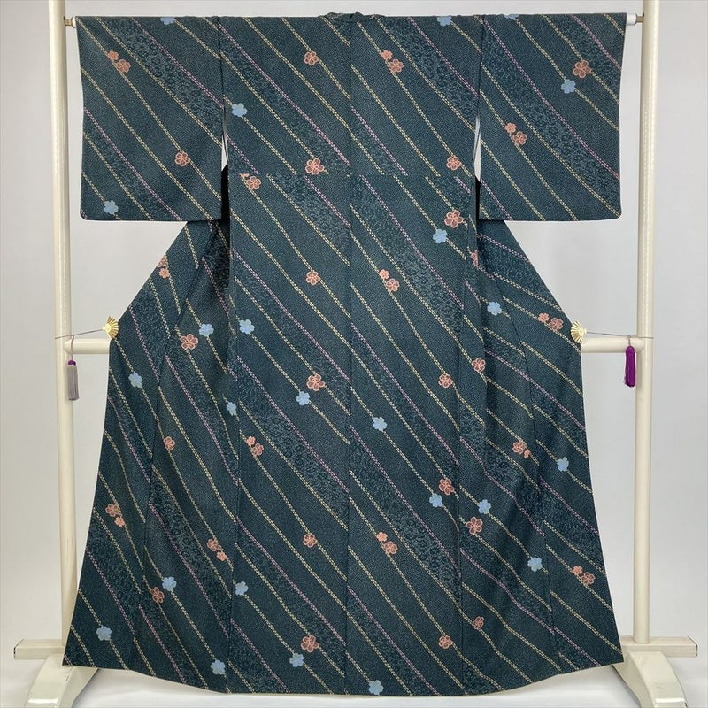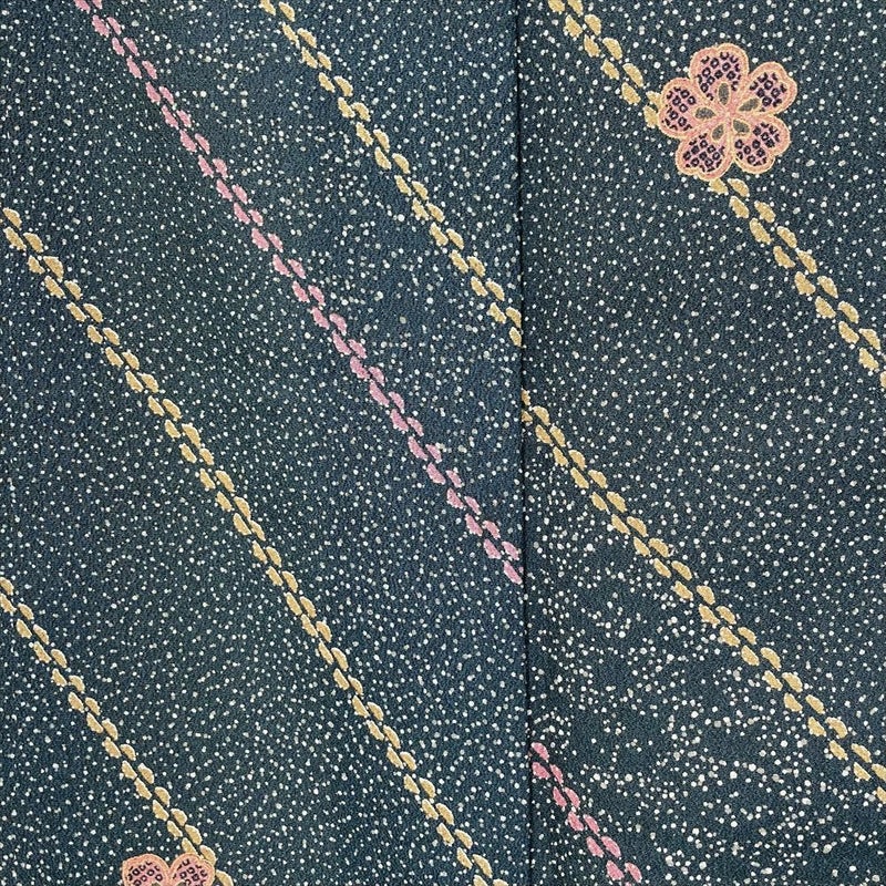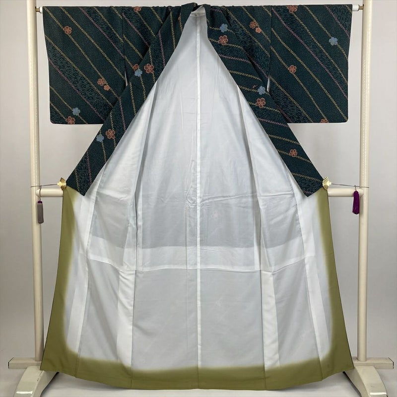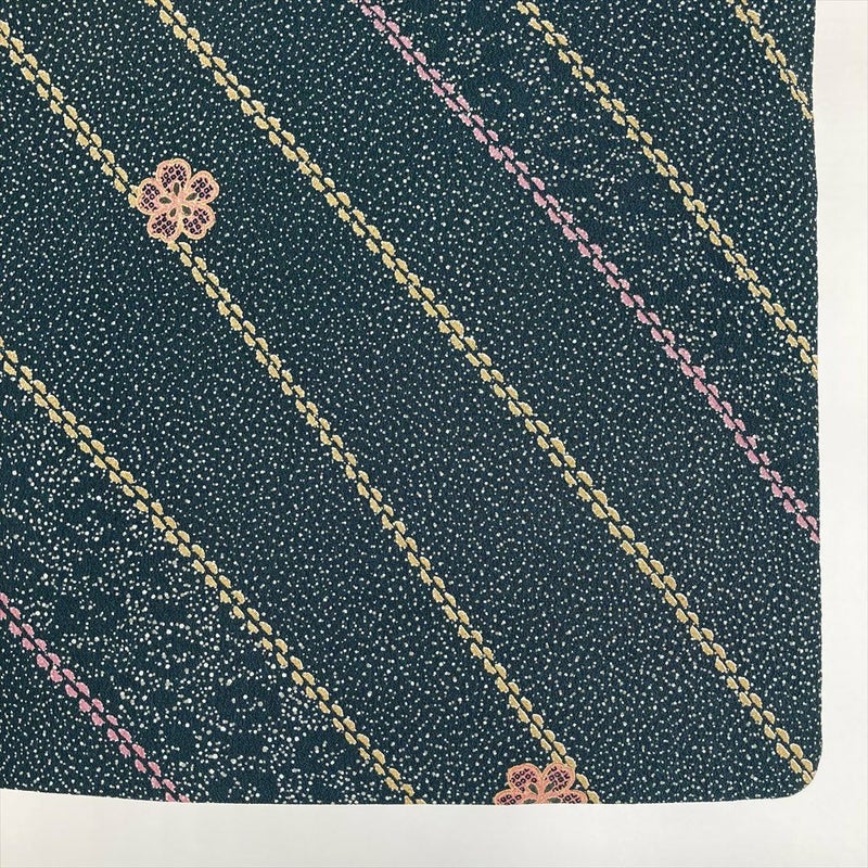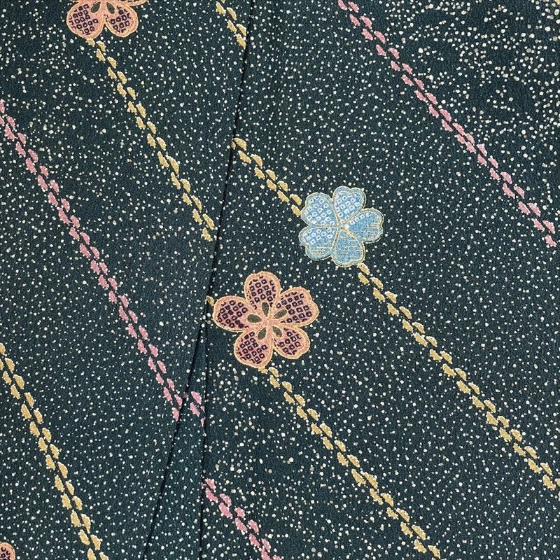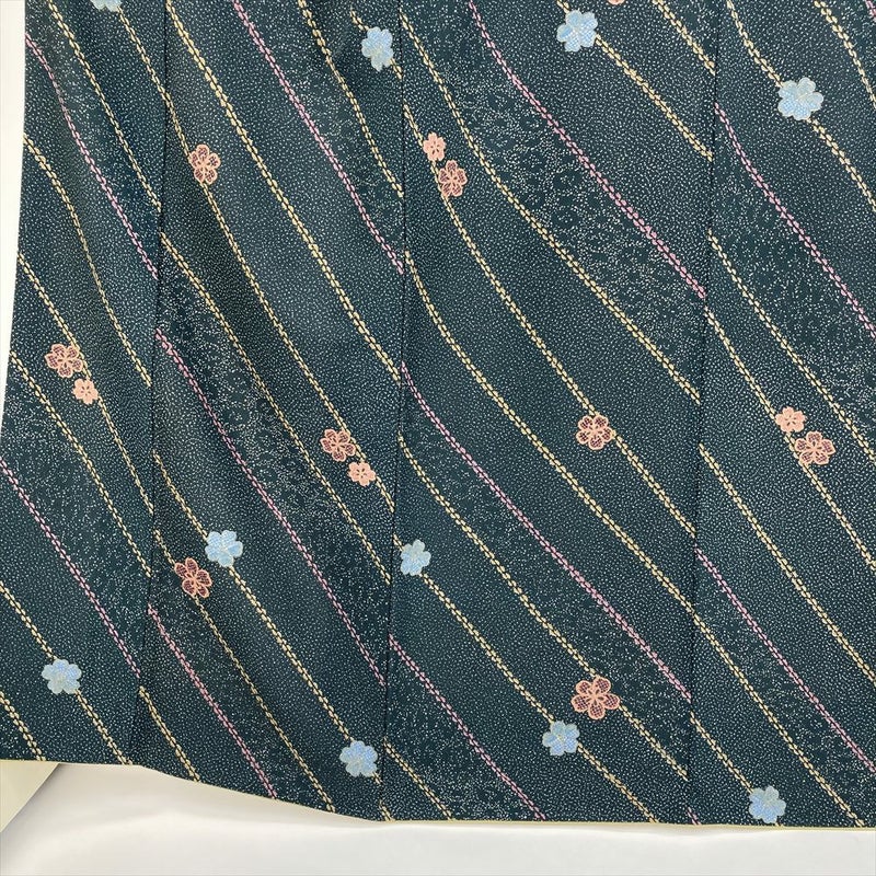 (中古) 小紋 深緑 カジュアル 吹雪 小花 袷 ポリエステル【身丈】157.5cm【裄丈】64cm