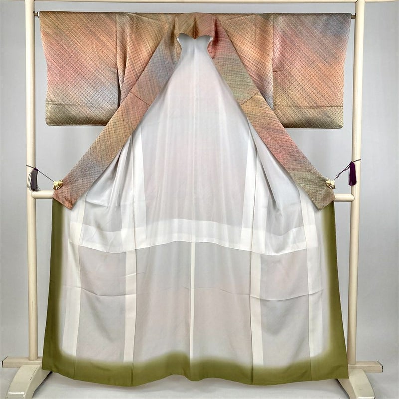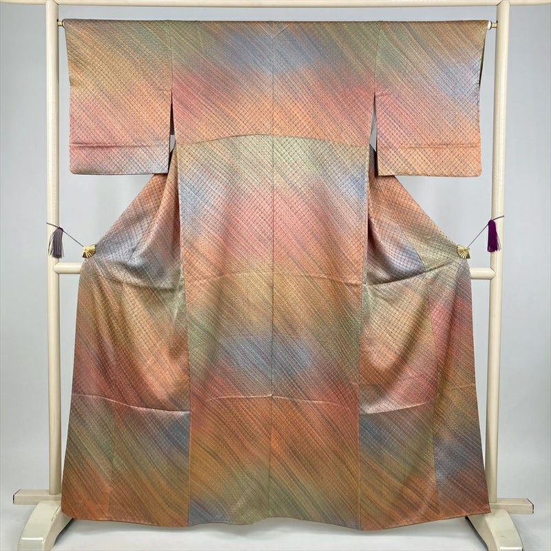 (中古) 小紋 マルチカラー カジュアル しけ引き染め グラデーション 袷 絹 【身丈】156.5cm【裄丈】64.5cm