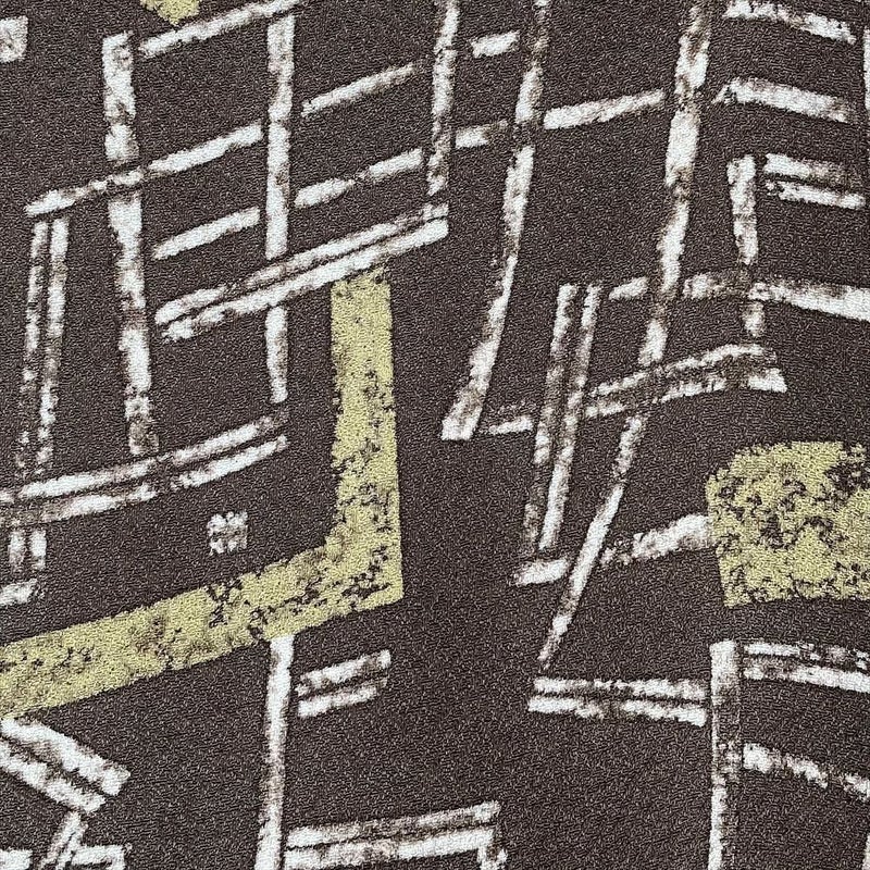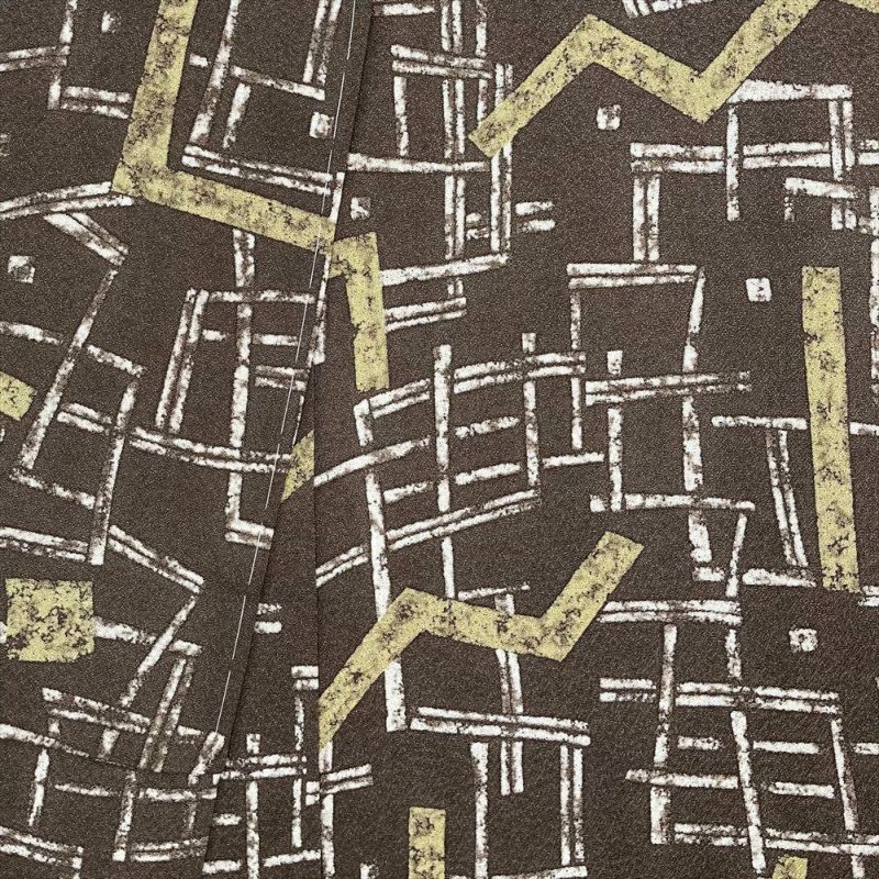 しなやかな正絹の生地に、モダンな幾何学模様を染め上げたおしゃれな小紋です。地紋織の繊細な表情と、洗練された色使いが、着る人の個性を引き立てます。