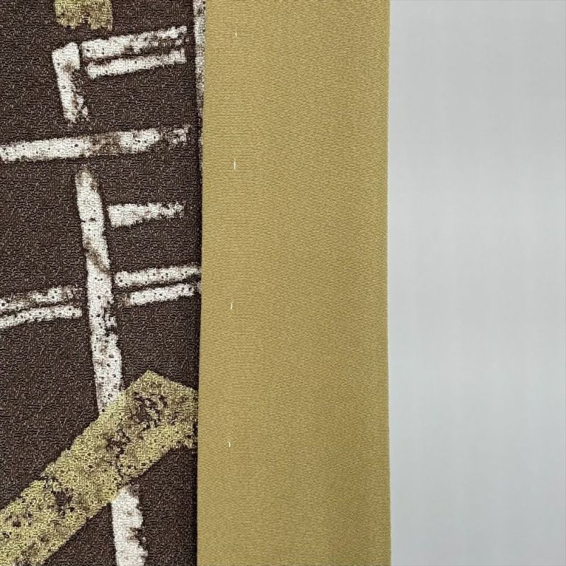 幾何学模様は、伝統的な着物の柄とは一味違う、現代的なセンスを感じさせます。おしゃれな色使いは、コーディネートの幅を広げ、帯や小物によって、様々な表情をお楽しみいただけます。